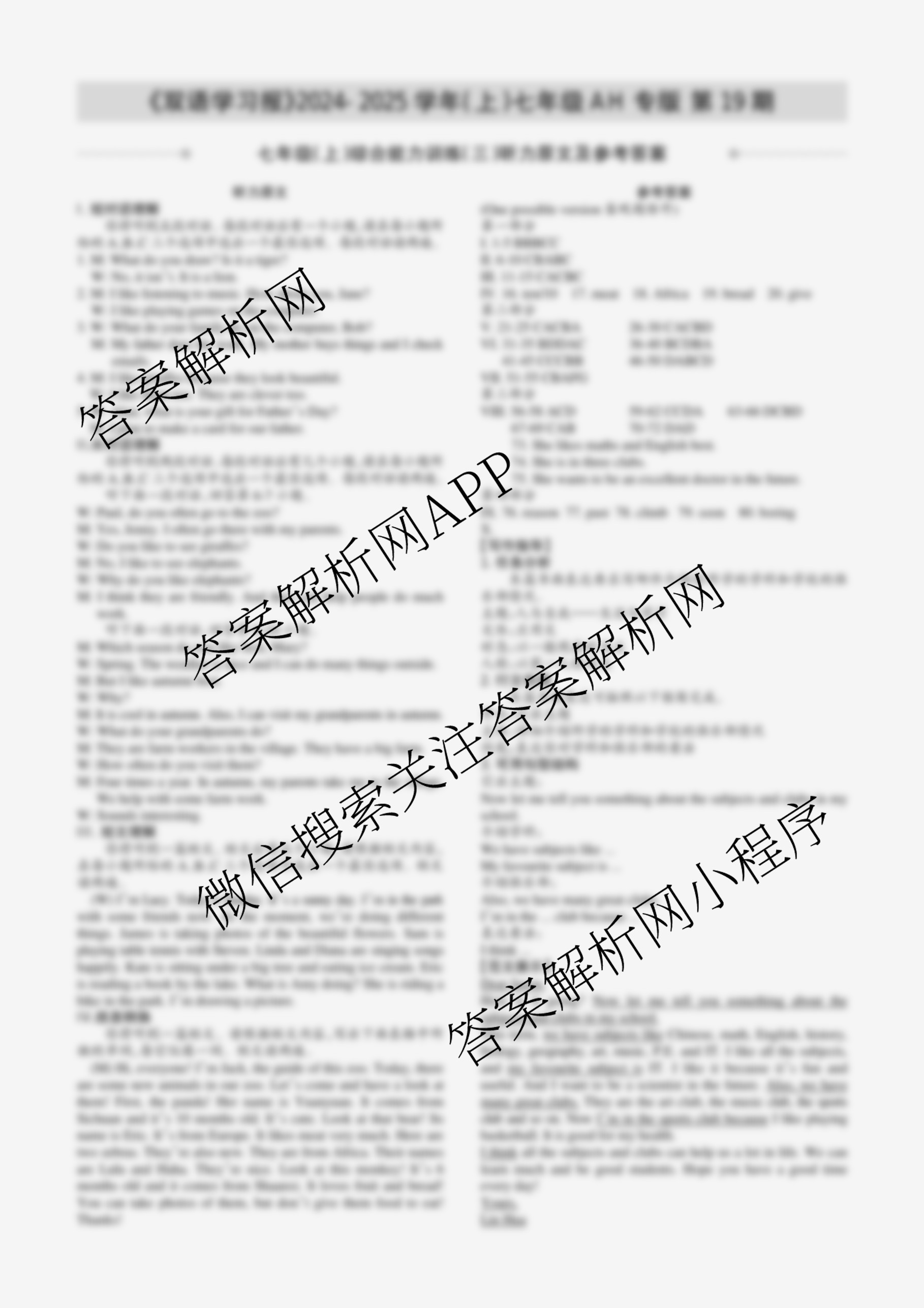 2024-2025学年上学期 双语学习报 七年级 X版AH专版第19期答案