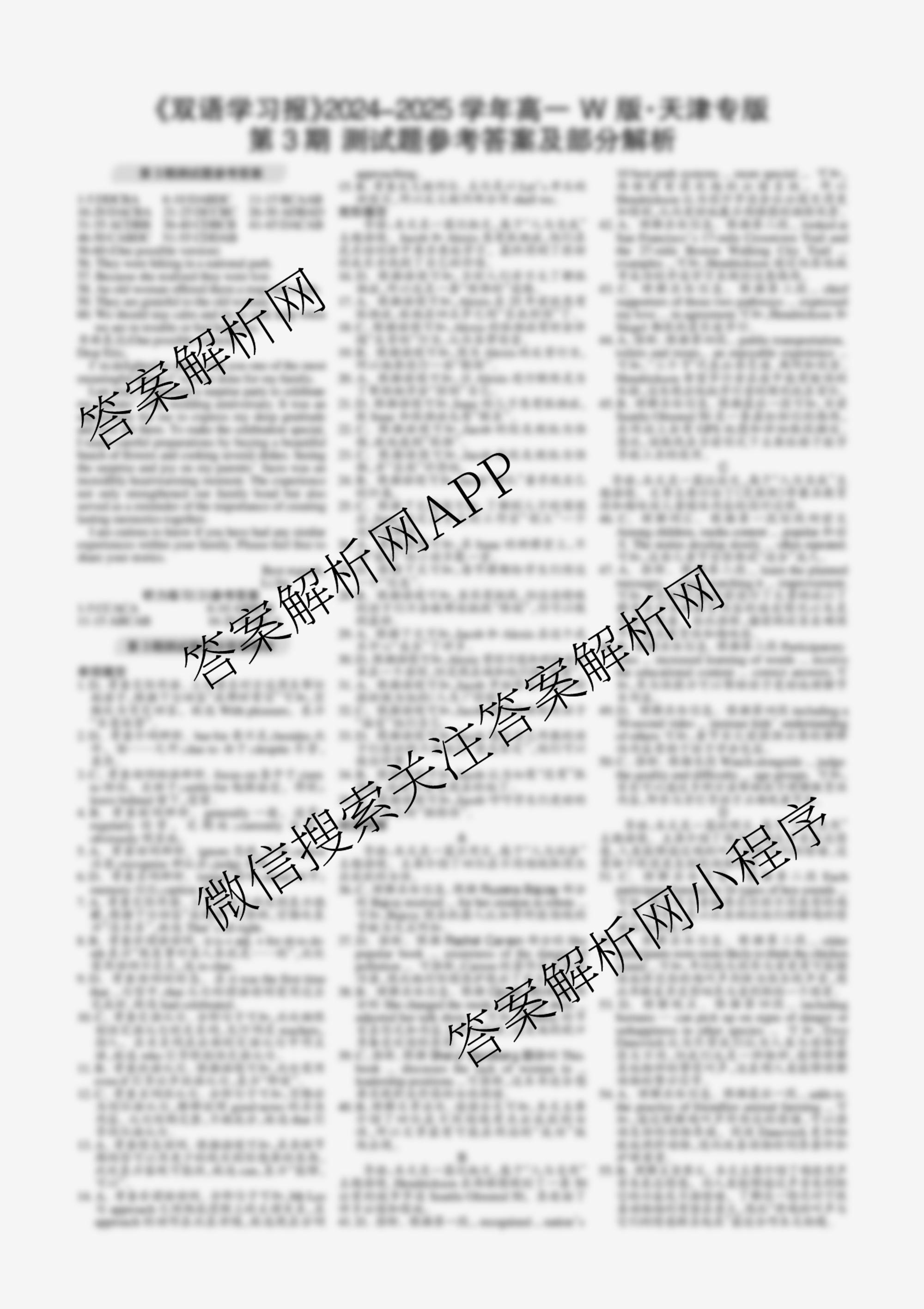 2024-2025 上学期 双语学习报 高一 W版新教材天津专版第3期答案