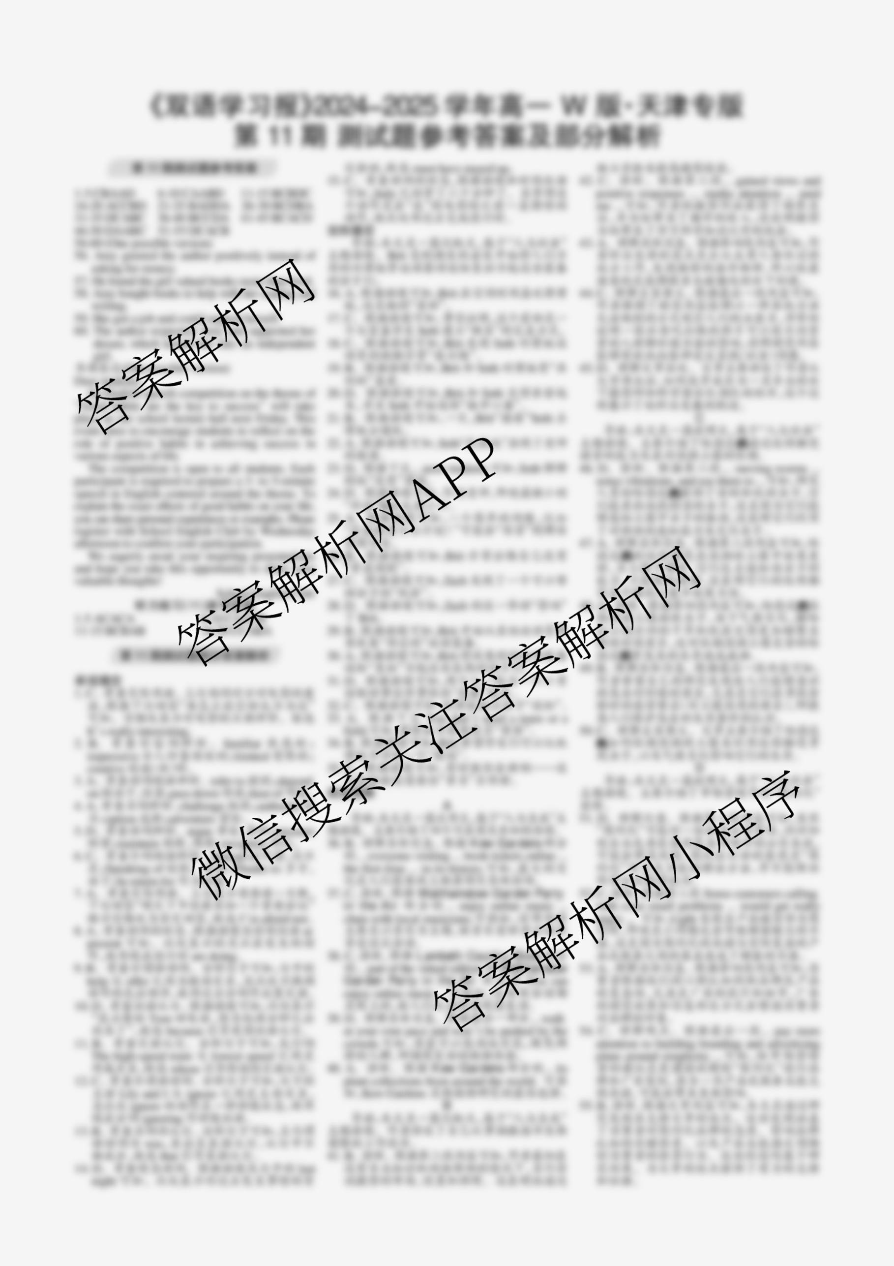 2024-2025 上学期 双语学习报 高一 W版新教材天津专版第11期答案