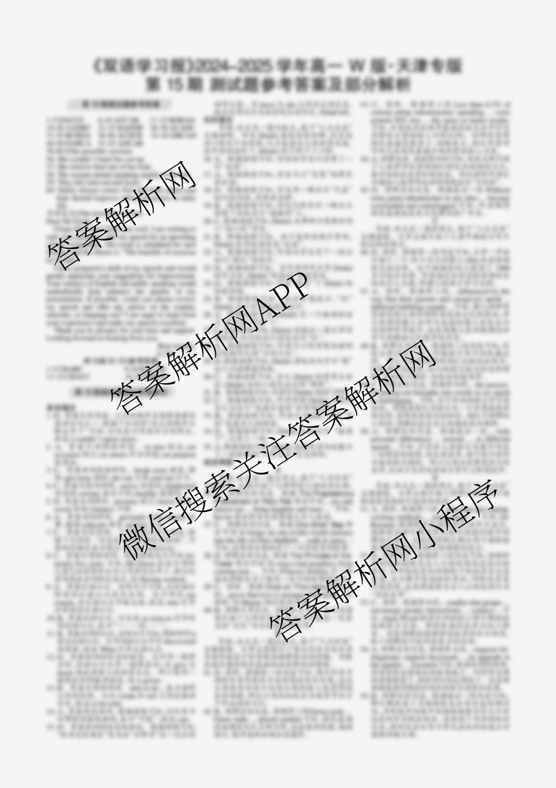 2024-2025 上学期 双语学习报 高一 W版新教材天津专版第15期答案