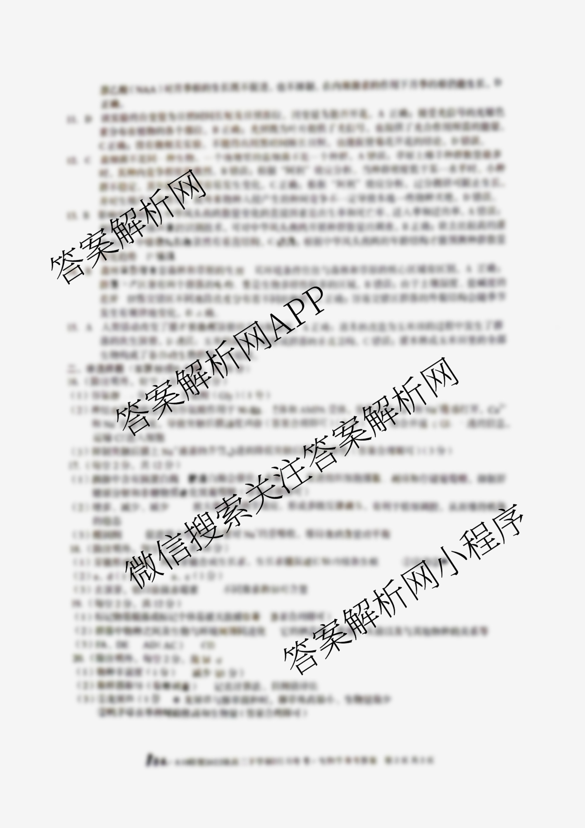 - (高二)1号卷·A10联盟2022级下学期2月开年考生物答案