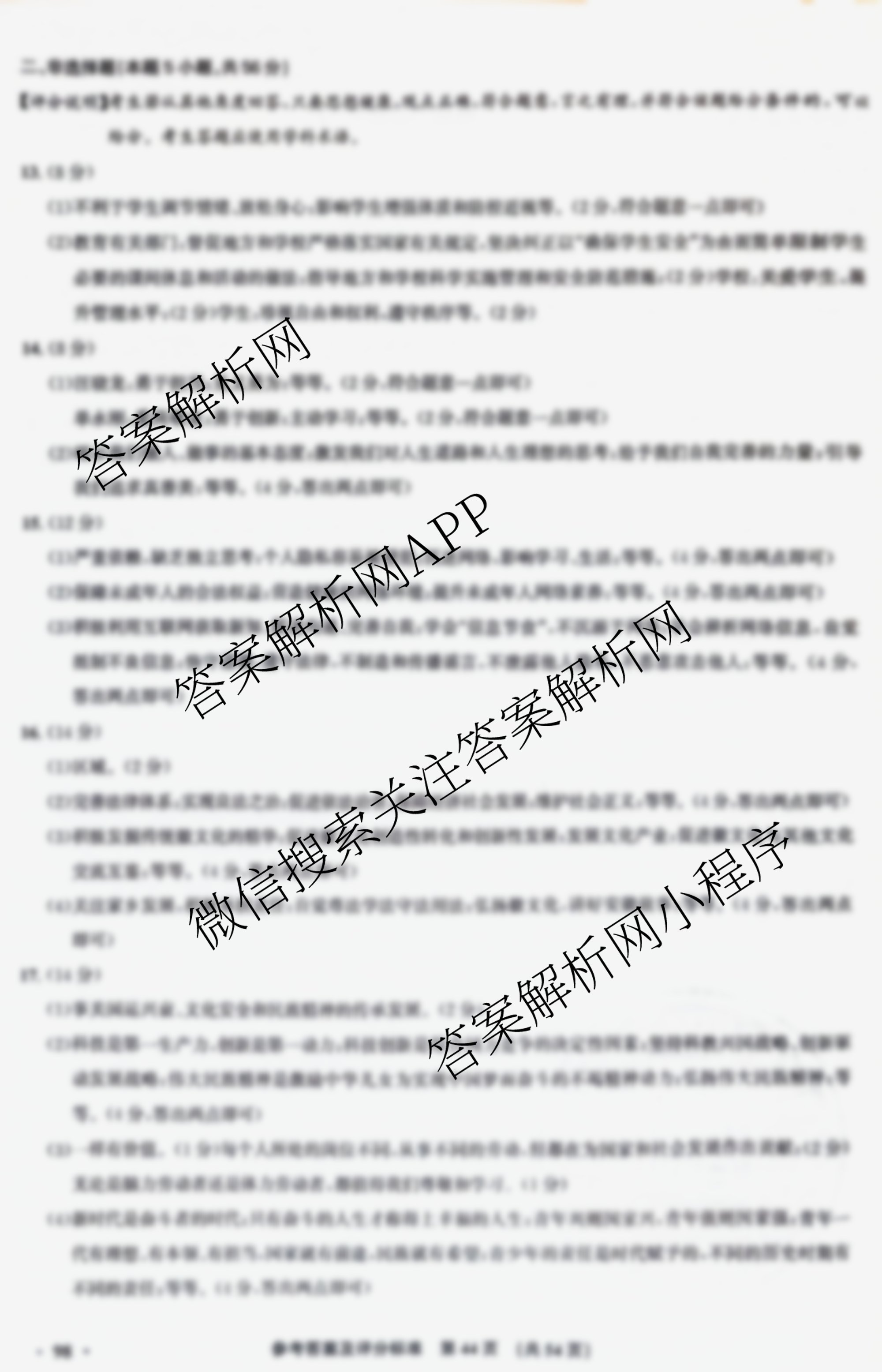 2024安徽中考原创模拟卷(1号卷)·中考智高点·夺魁卷(一)道德与法治答案