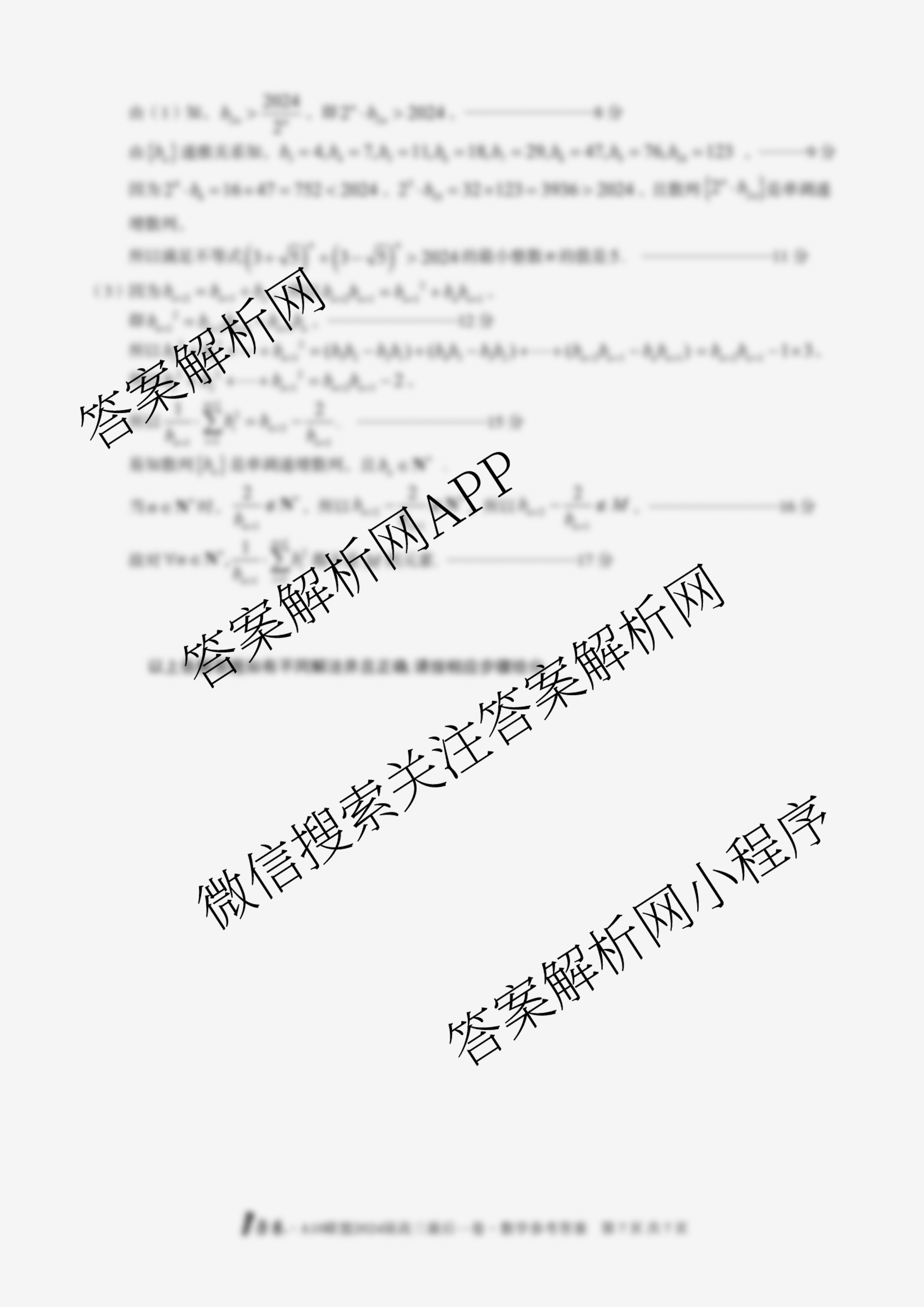 (高三)1号卷A10联盟2024届最后一卷数学答案