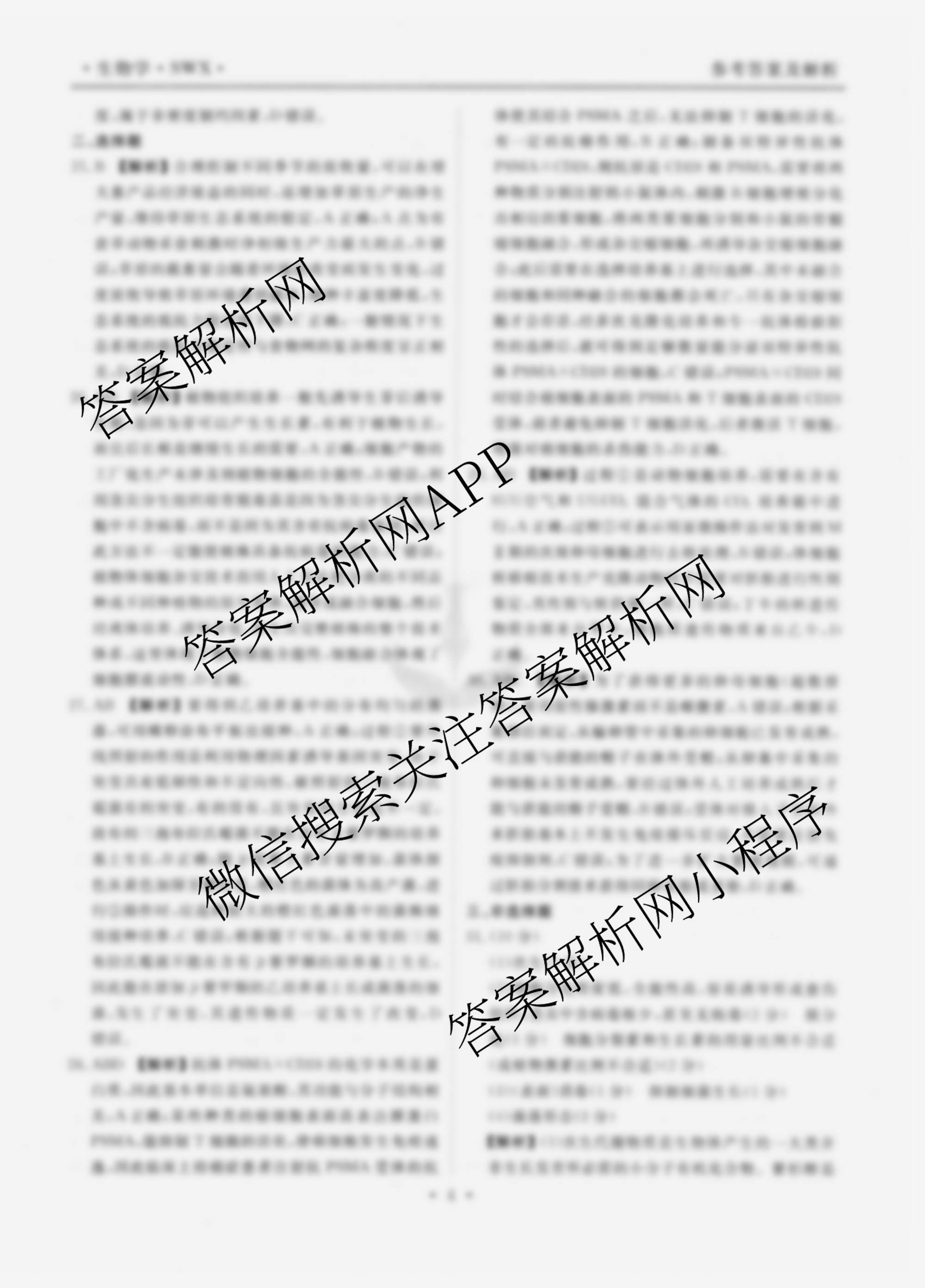 - (高二)(衡水金卷先享题)·月考卷2023~2024学年度下学期年级期中考试生物(SWX)答案