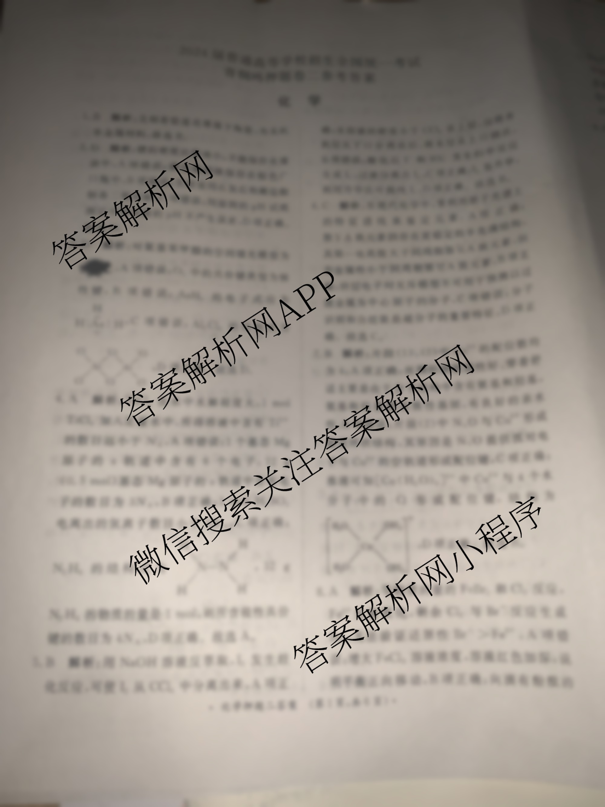 - [高三]青桐鸣·2024年普通高等学校招生全国统一考试青桐鸣押题卷二 化学答案