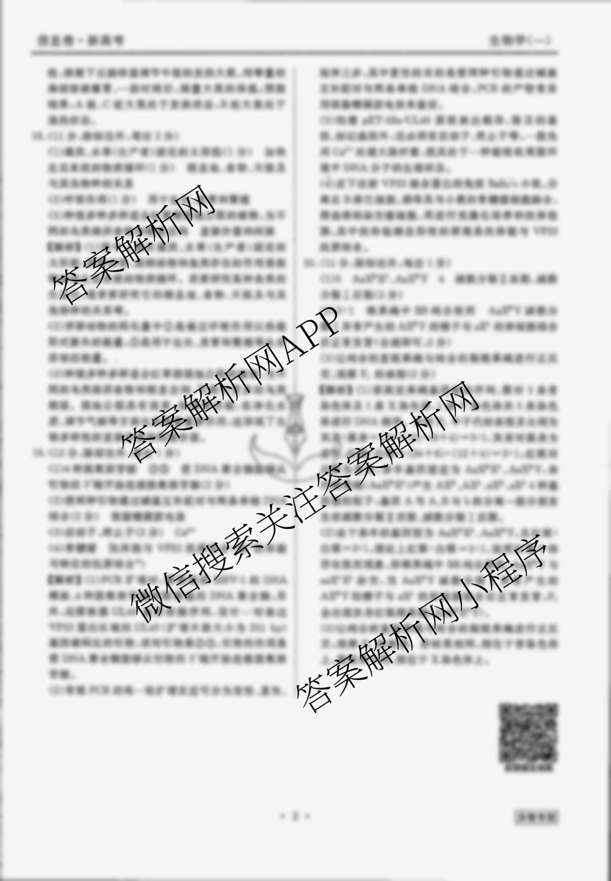 (衡水金卷先享题)·信息卷 2024年普通高中学业水平选择性考试模拟试题 生物(安徽专版)(一)1答案