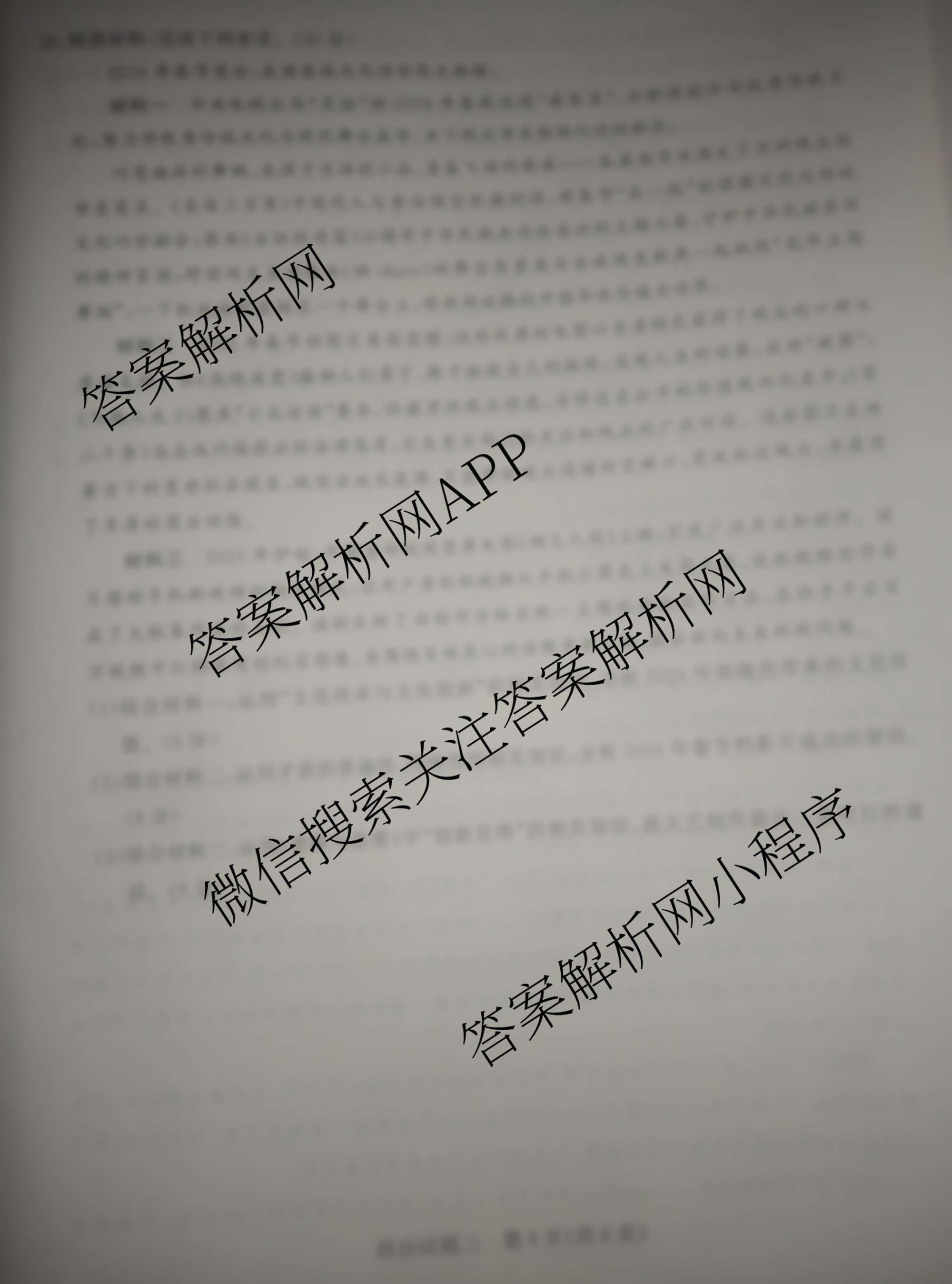 - 青桐鸣2024年普通高等学校招生全国统一考试 青桐鸣押题卷二 文综(新教材)答案
