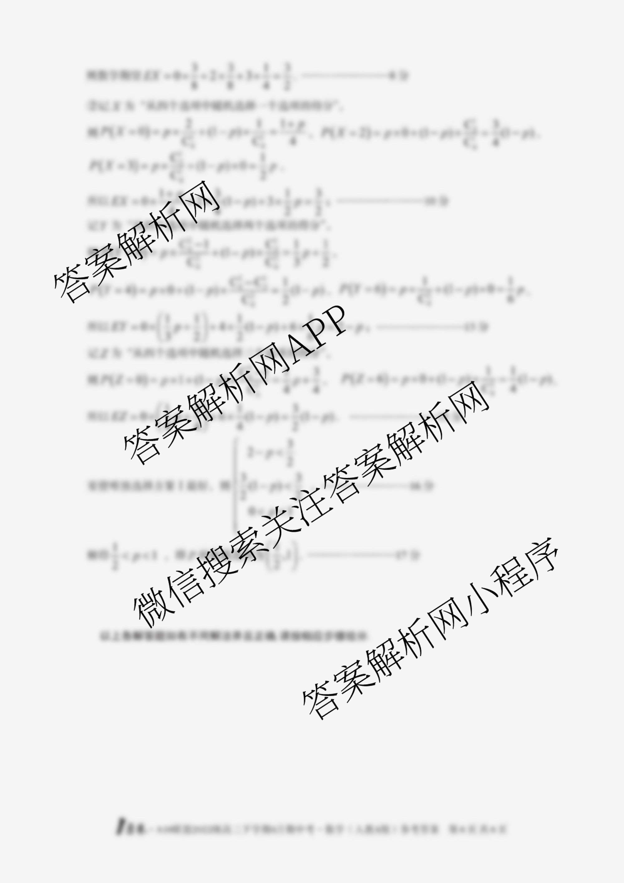 - (高二)[1号卷]·A10联盟2022级下学期4月期中考数学(人教A版)答案