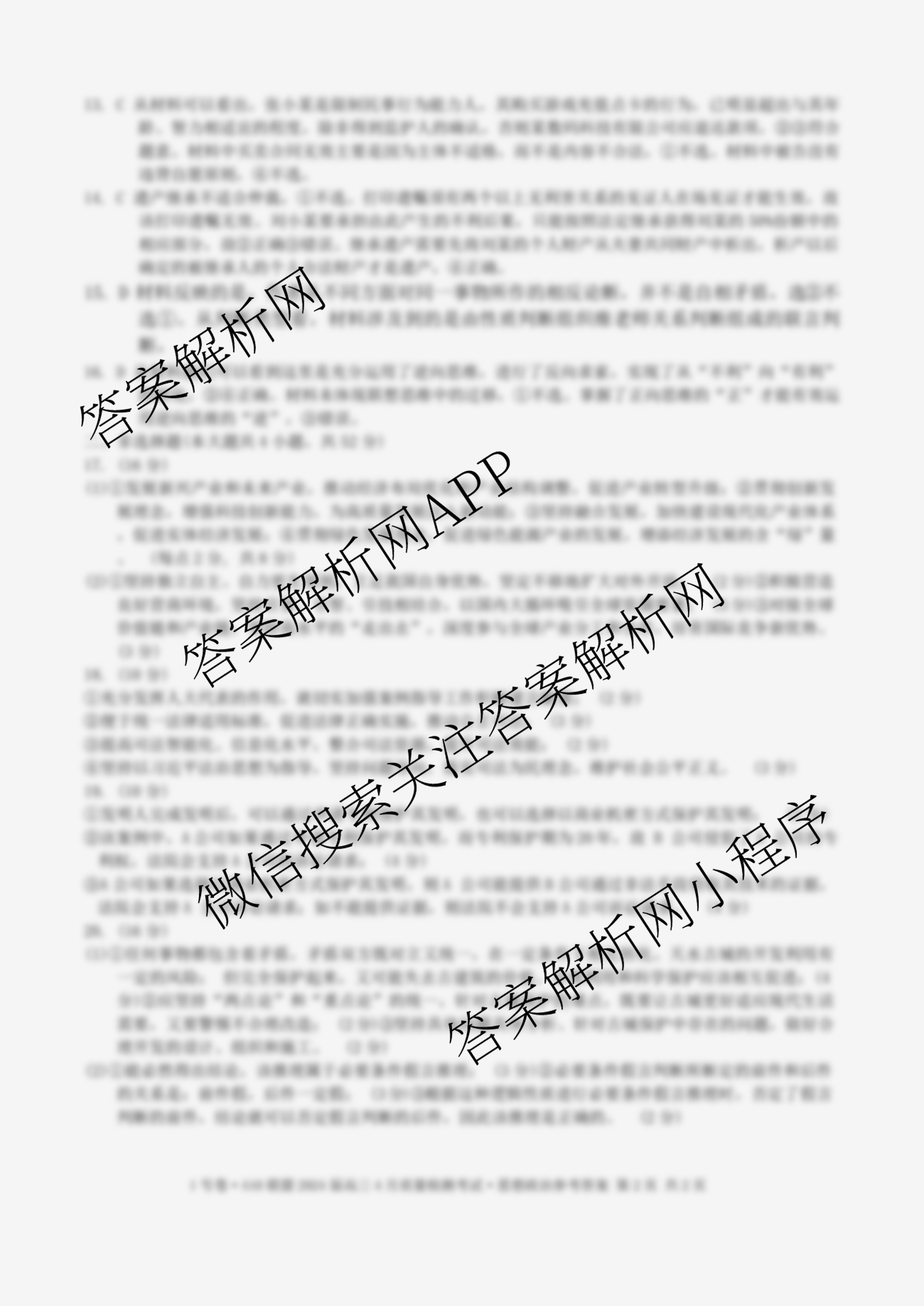 2024届[1号卷]A10联盟(高三)4月质量检测考试政治答案