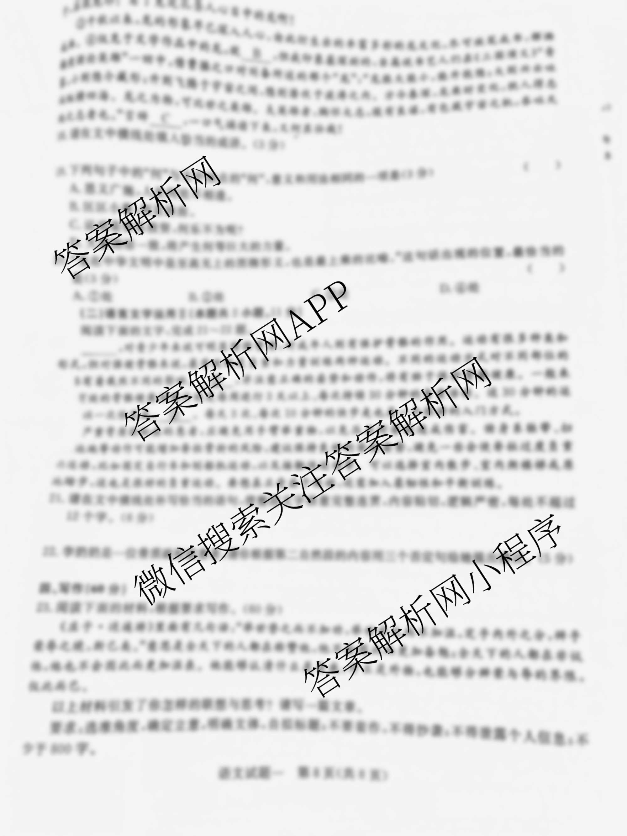 - 青桐鸣·2024年普通高等学校招生全国统一考试 青桐鸣冲刺卷(一)语文答案