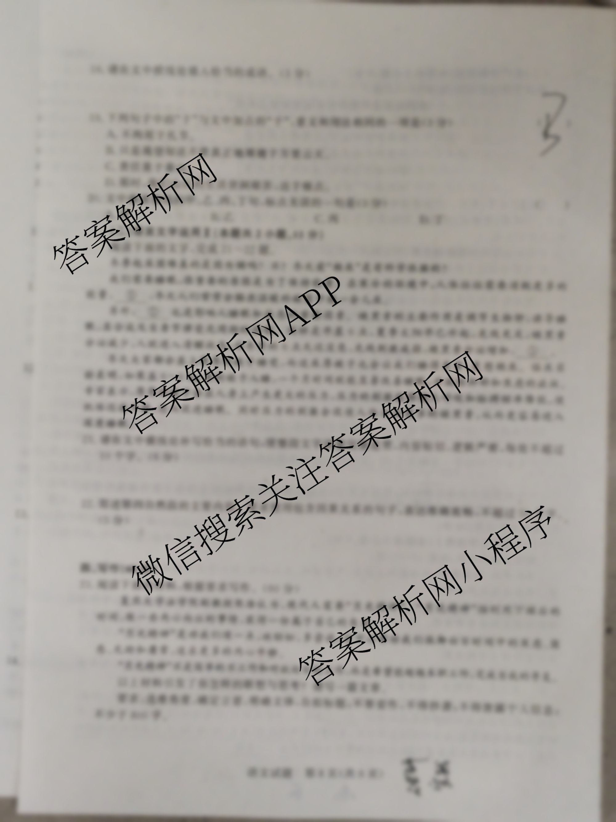 - 2024届[高三]青桐鸣普通高等学校招生全国统一考试青桐鸣大联考()(3月)语文试题