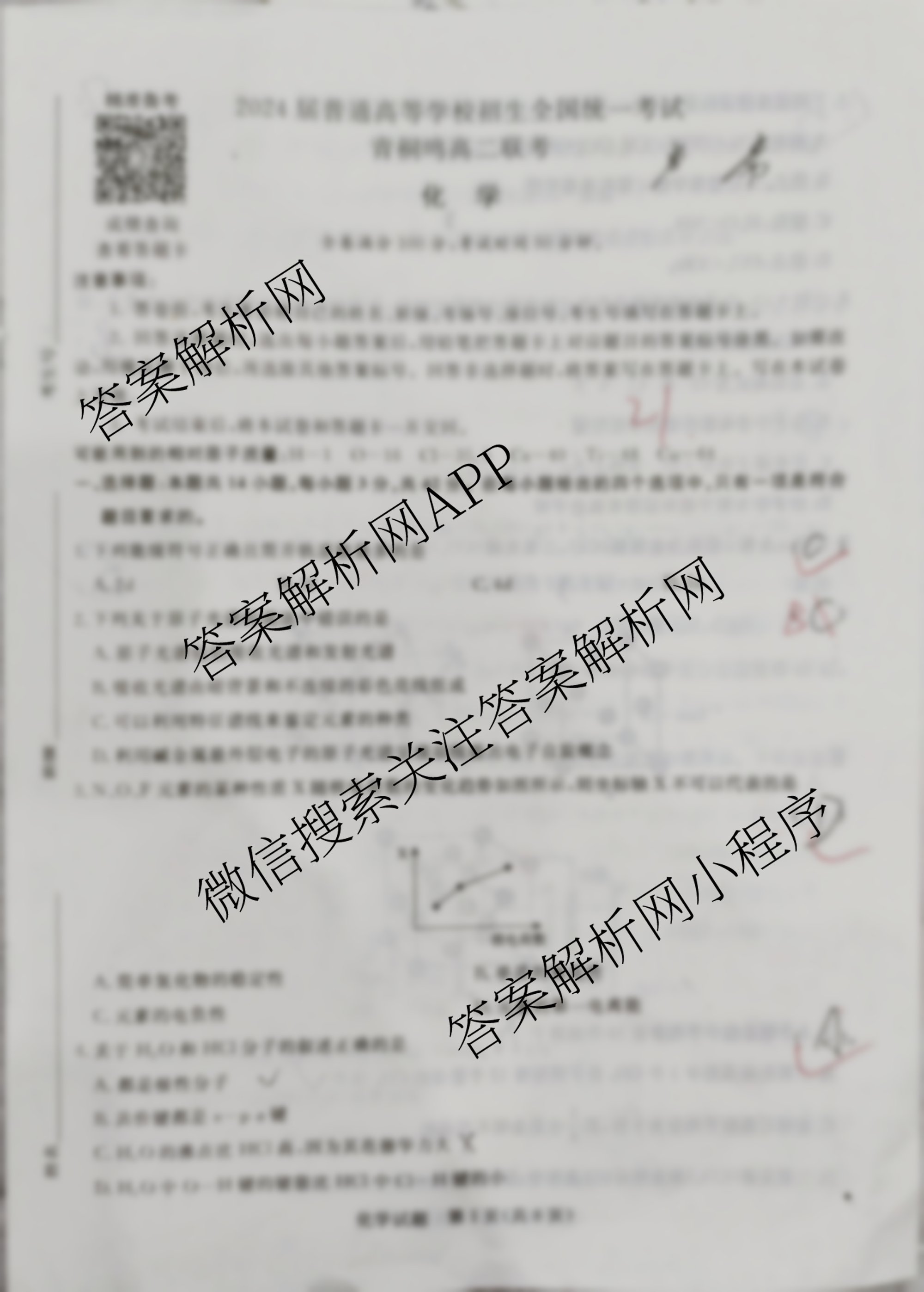 2024届普通高等学校招生全国统一考试·3月青桐鸣大联考(高二)化学试题,目前小牛顿答案网已经汇总了2024届普通高等学校招生全国统一考试·3月青桐鸣大联考(高二)化学试题的各科答案和试卷,获取更多桐鸣卷答案解析,请在关注本站。