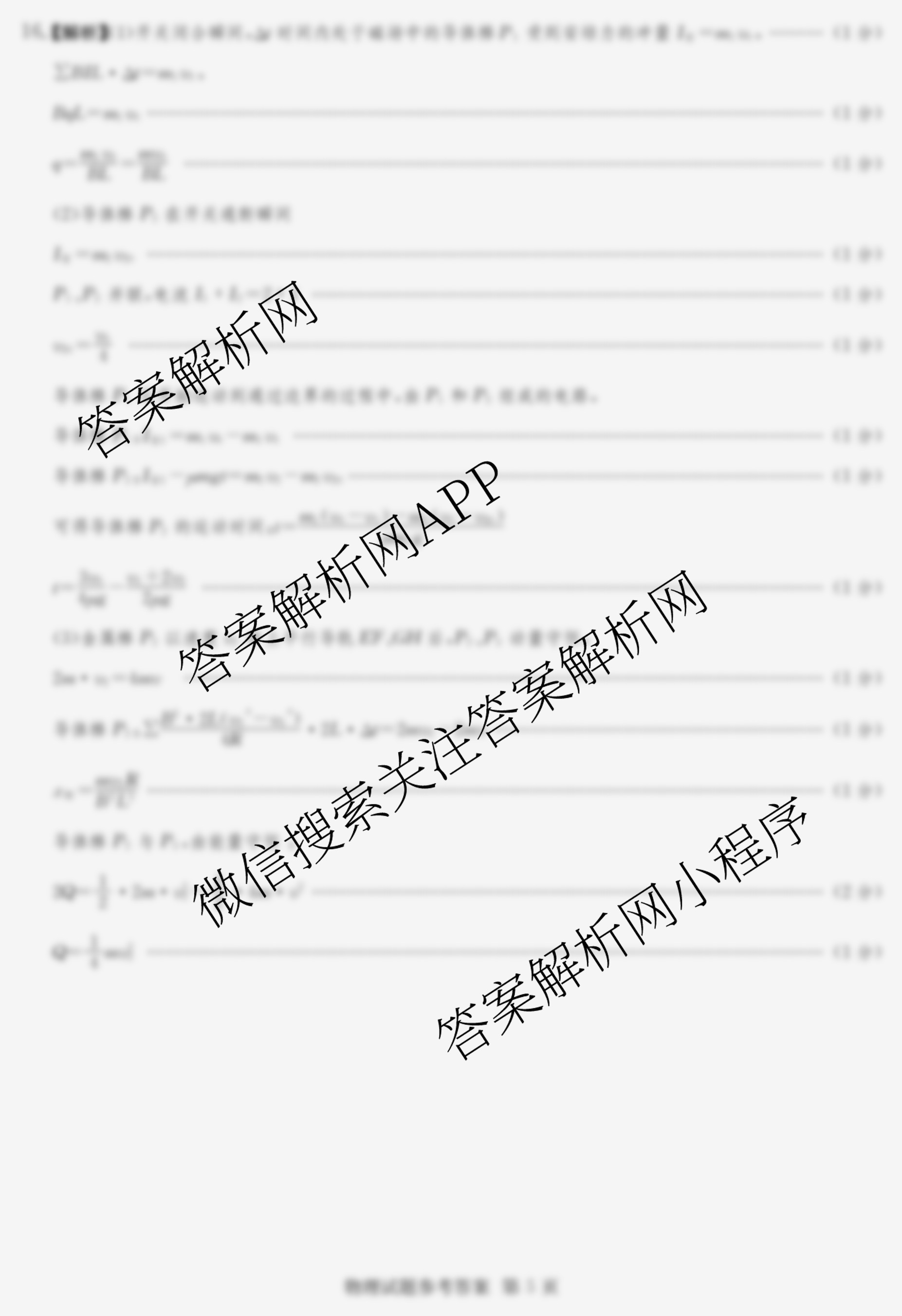 (高三)[佩佩教育]·2023年湖南四大名校名师团队模拟冲刺卷(1)物理答案