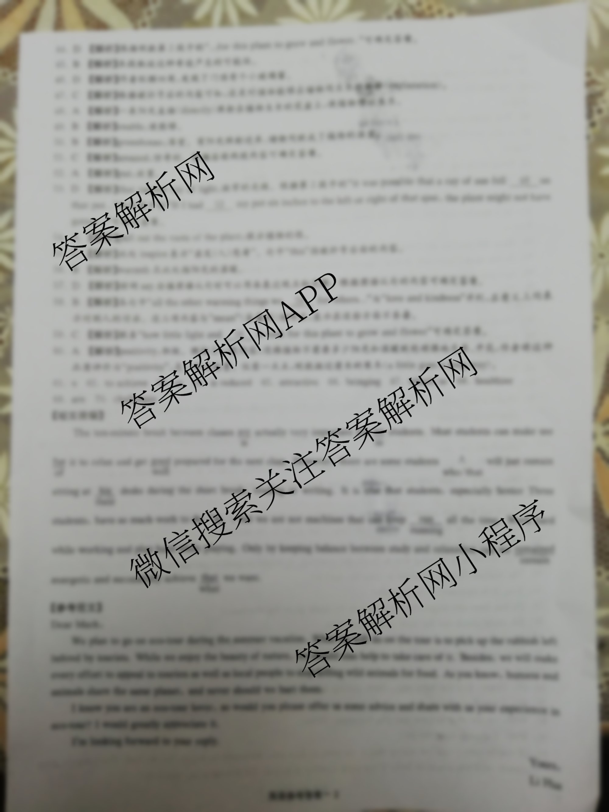 - (高三)2023[炎德英才大联考]月考试卷(五)(全国卷)英语答案