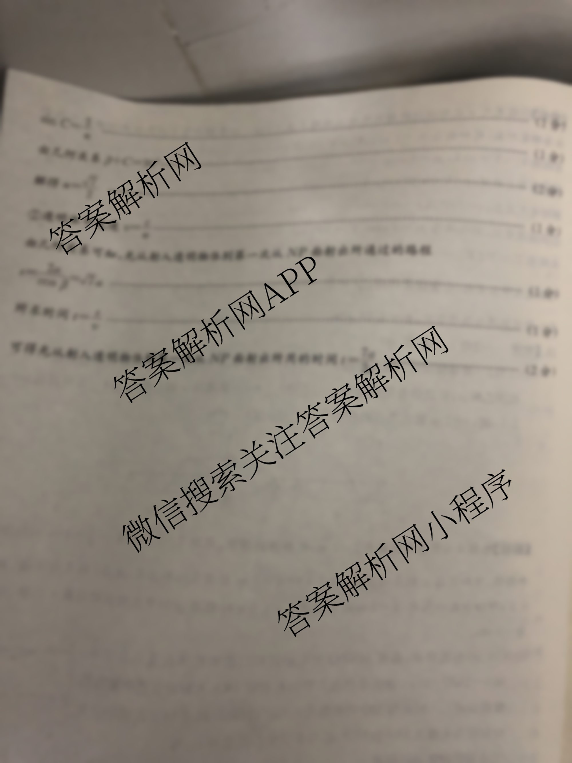 - 高三2023[炎德英才大联考]月考试卷(二)(全国卷)物理答案