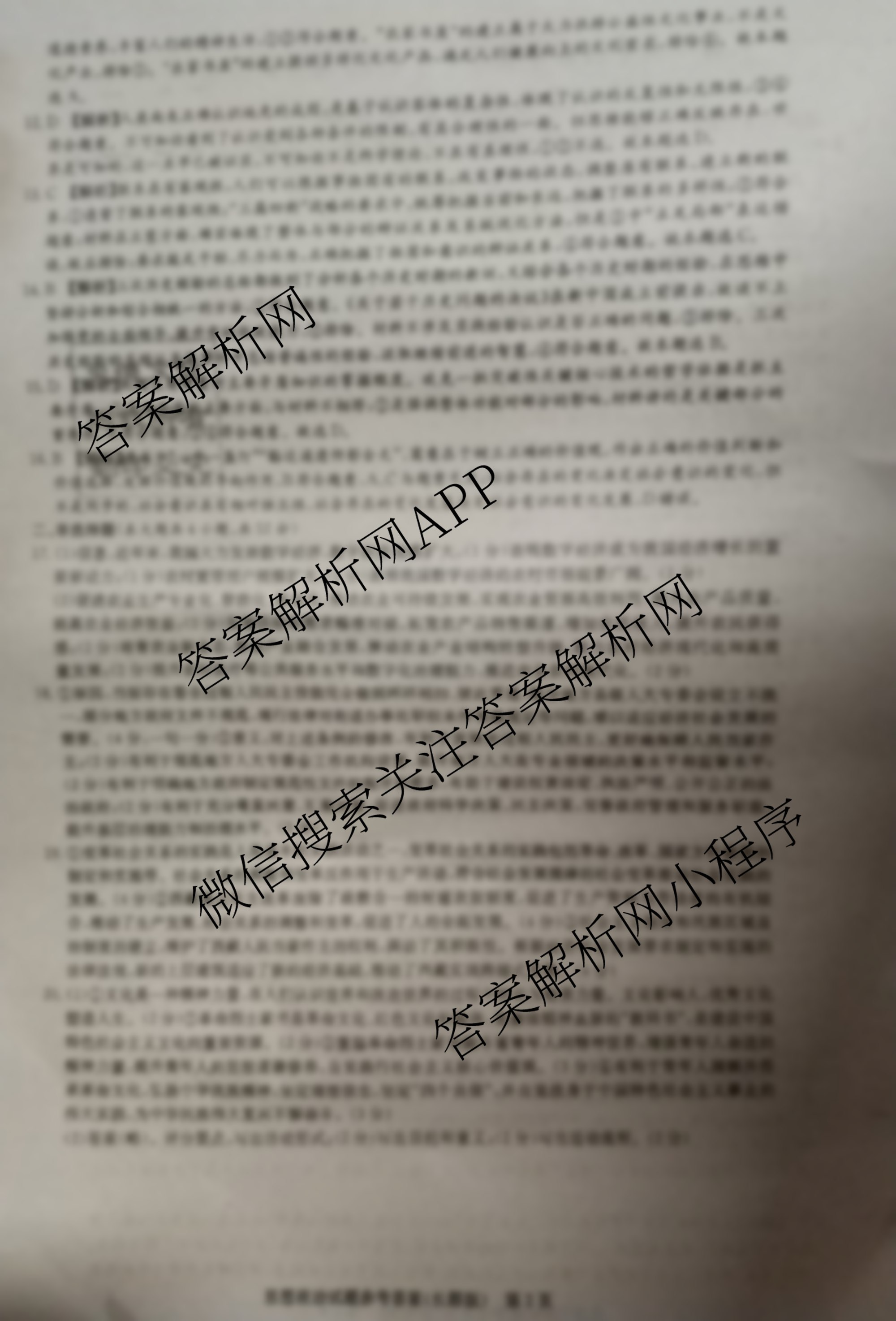 [炎德英才大联考]长郡中学2022届模拟试卷(一)政治答案