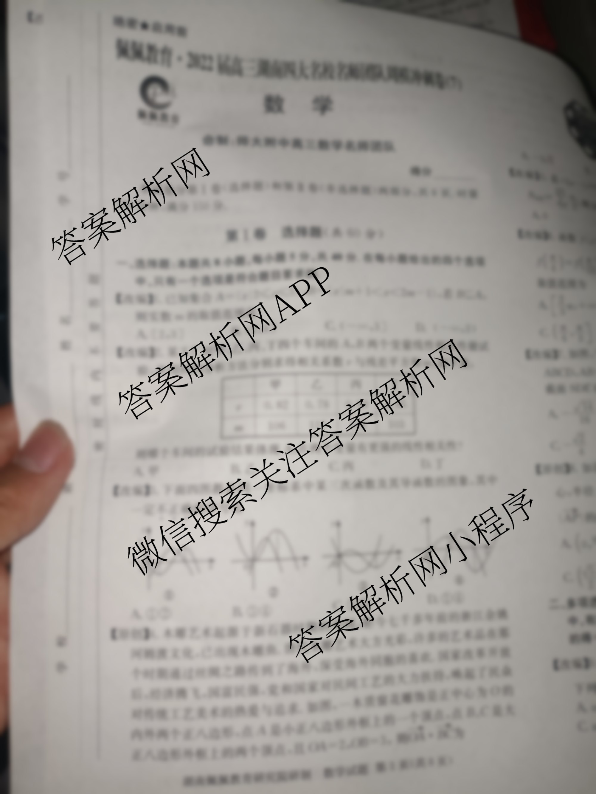 - 2022届高三湖南四大名校团队周模冲刺卷(7)数学答案