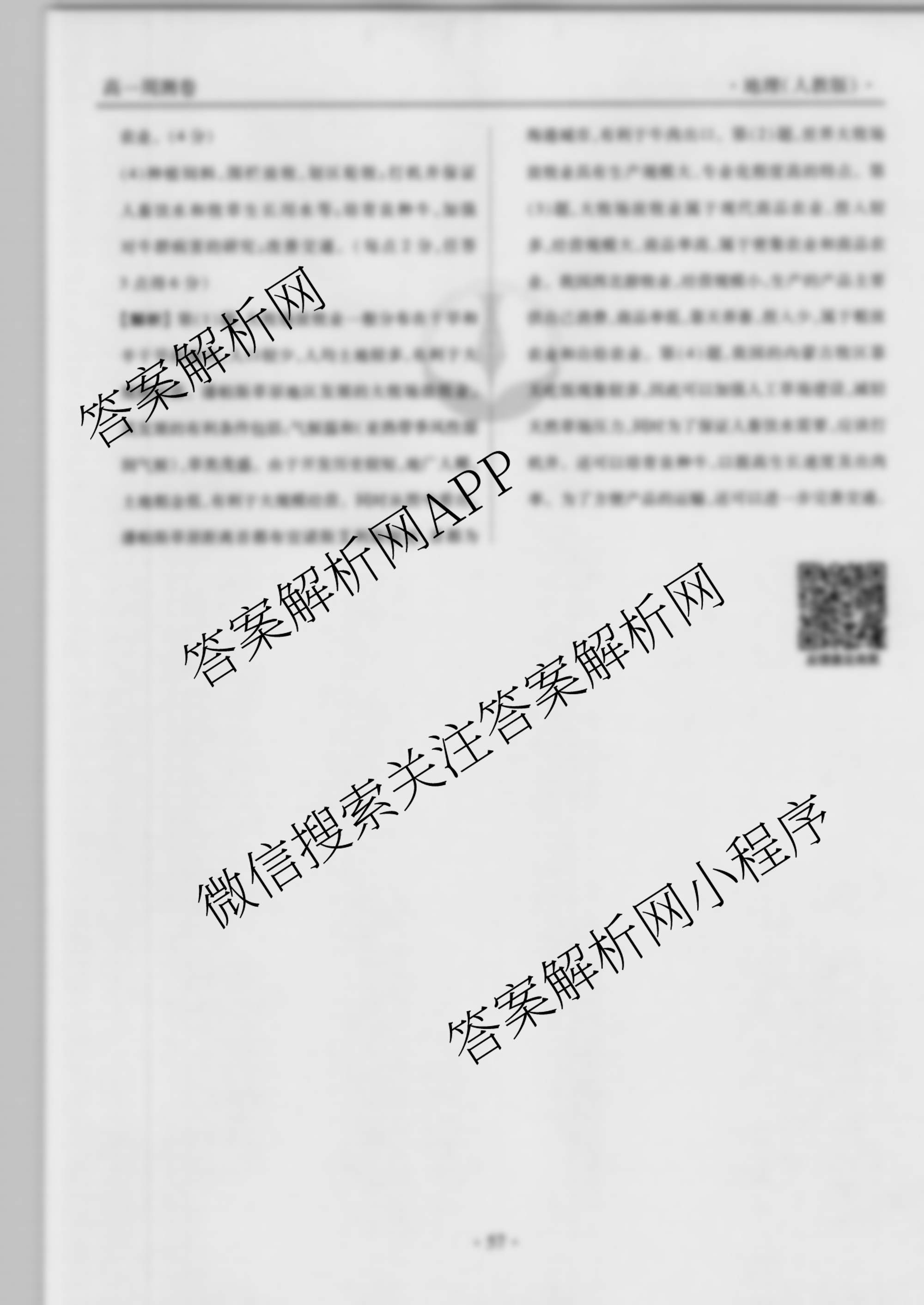 2021-2022衡水金卷先享题高一同步周测卷地理人教版(二十)20答案