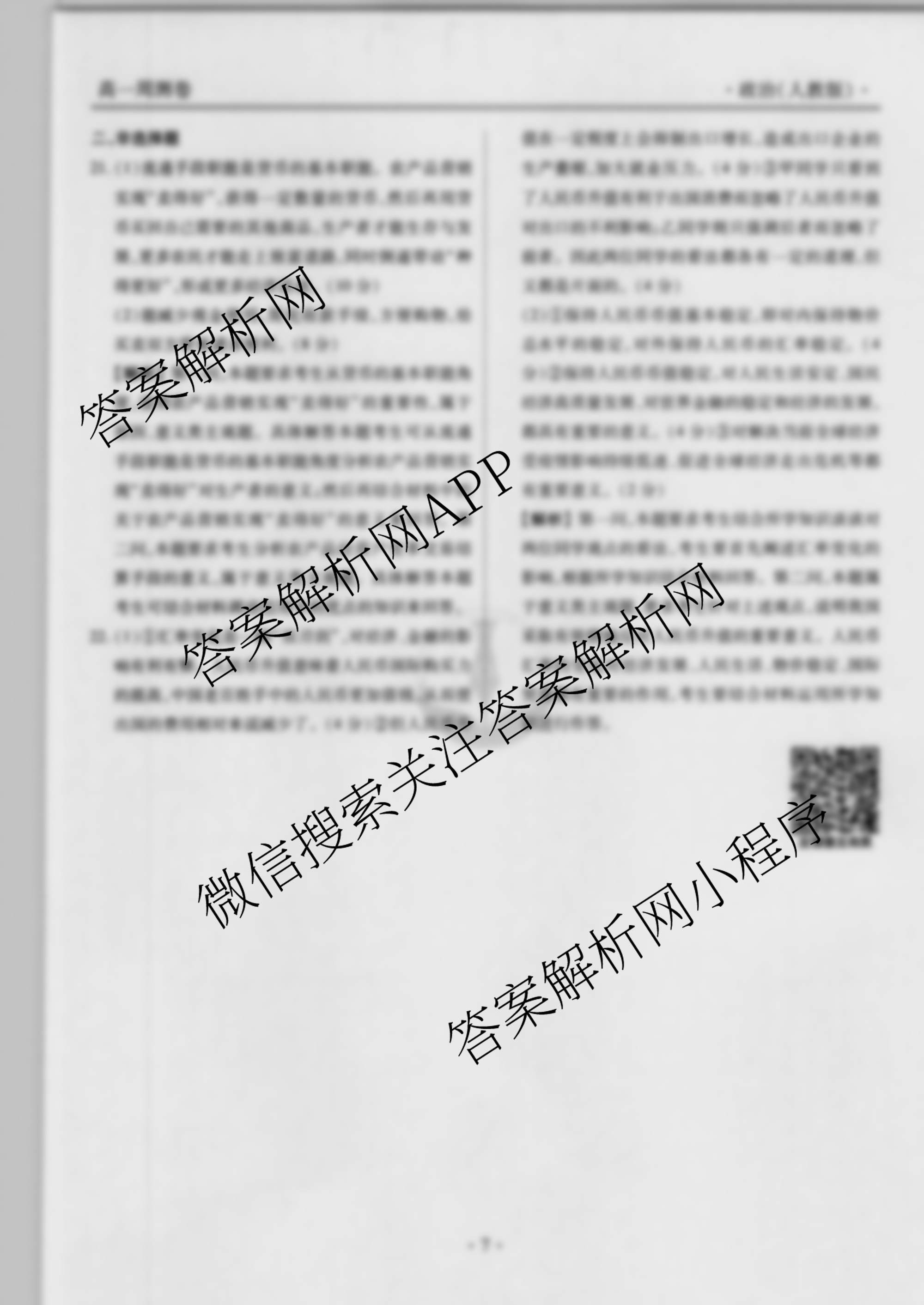 2021-2022衡水金卷先享题高一同步周测卷政治人教版(二)2答案