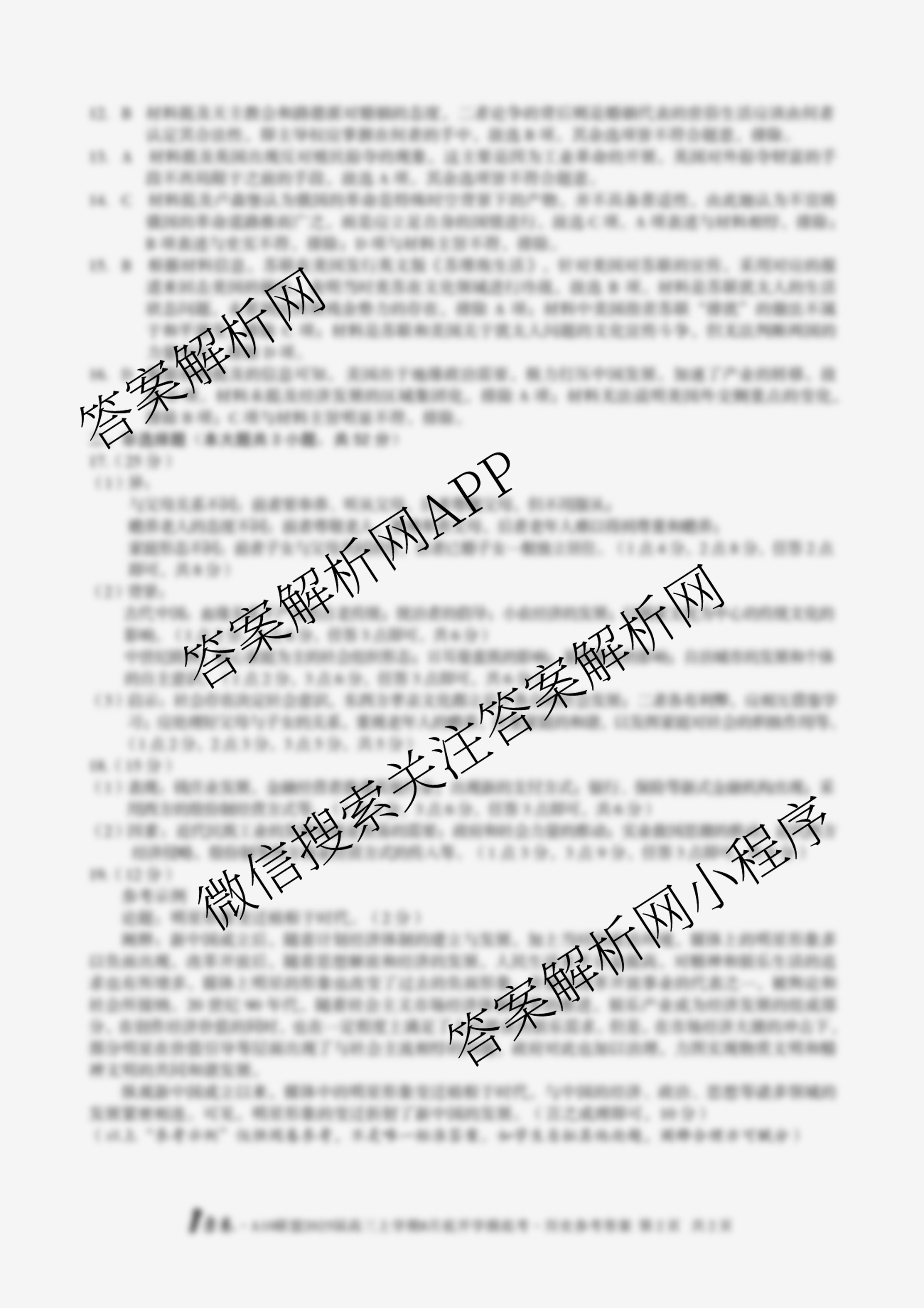 - (高三)1号卷A10联盟2025届上学期8月底开学摸底考历史答案