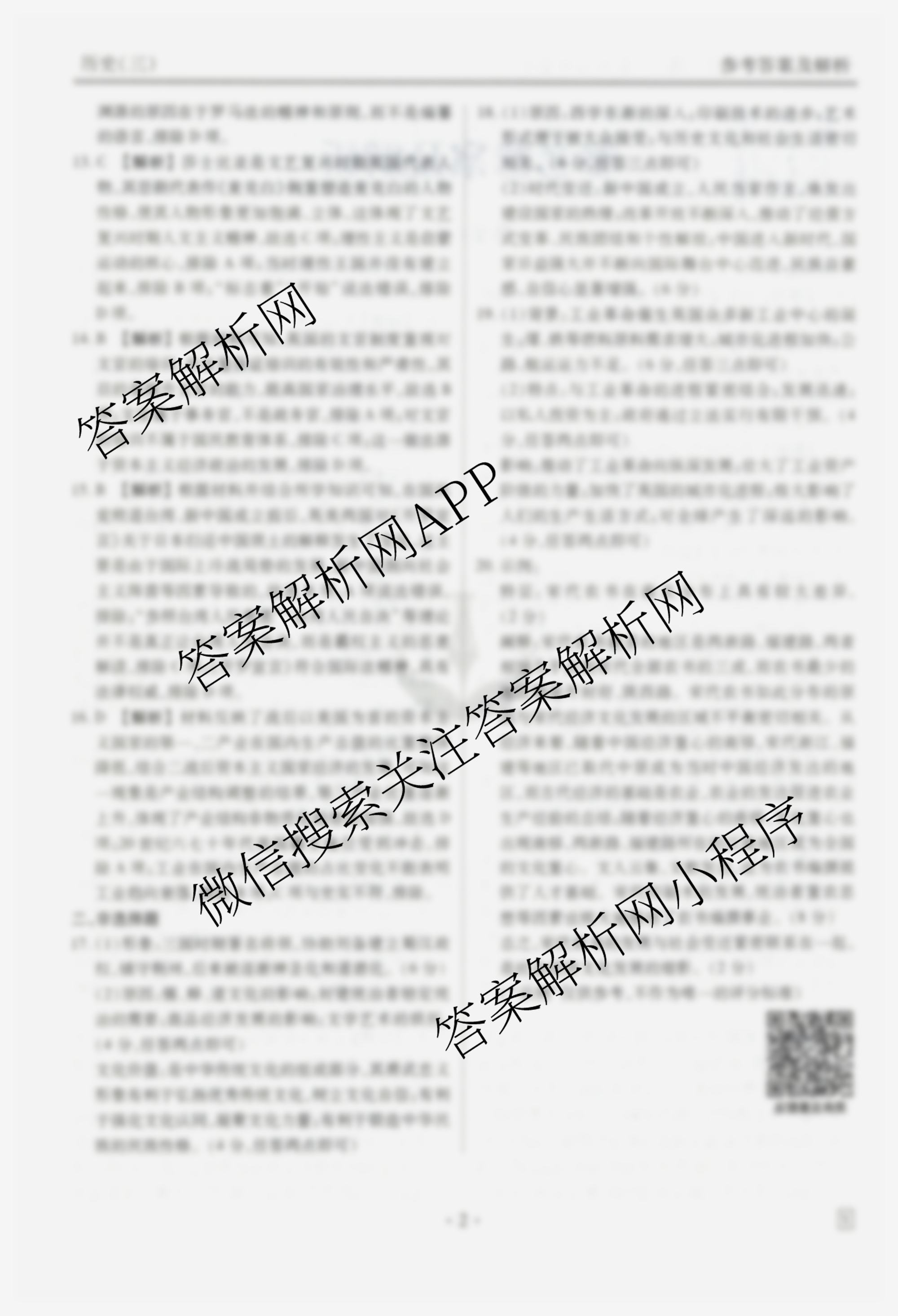 - (衡水金卷先享题)夯基卷 2025年普通高中学业水平选择性考试模拟 历史(AH)(三)3答案