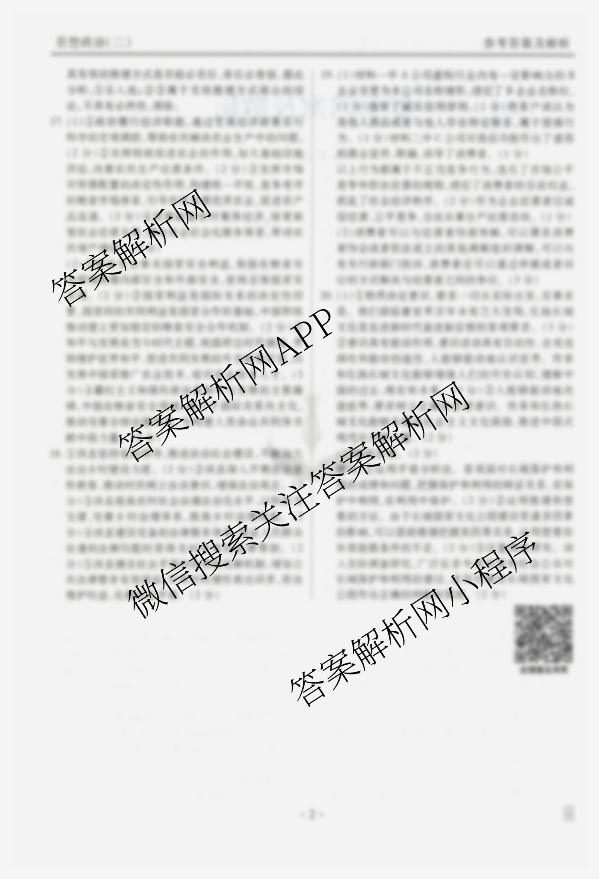 - (衡水金卷先享题)·夯基卷 2025年普通高中学业水平选择性考试模拟 政治(MH)(二)2答案