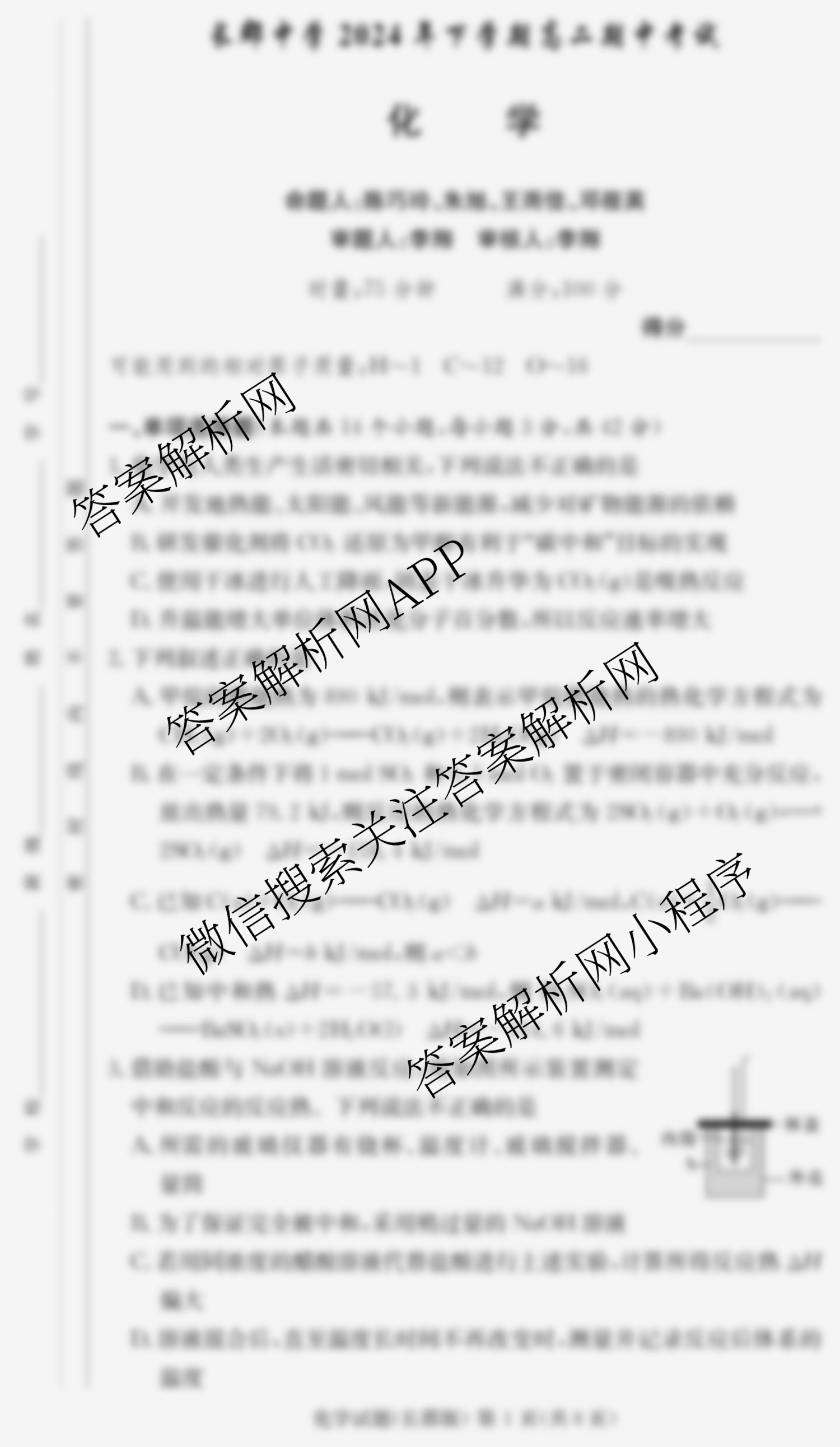 长郡中学2024年下学期高二期中考试化学试题,目前小牛顿答案网已经汇总了长郡中学2024年下学期高二期中考试化学试题的各科答案和试卷,获取更多炎德英才大联考答案解析,请在关注本站。