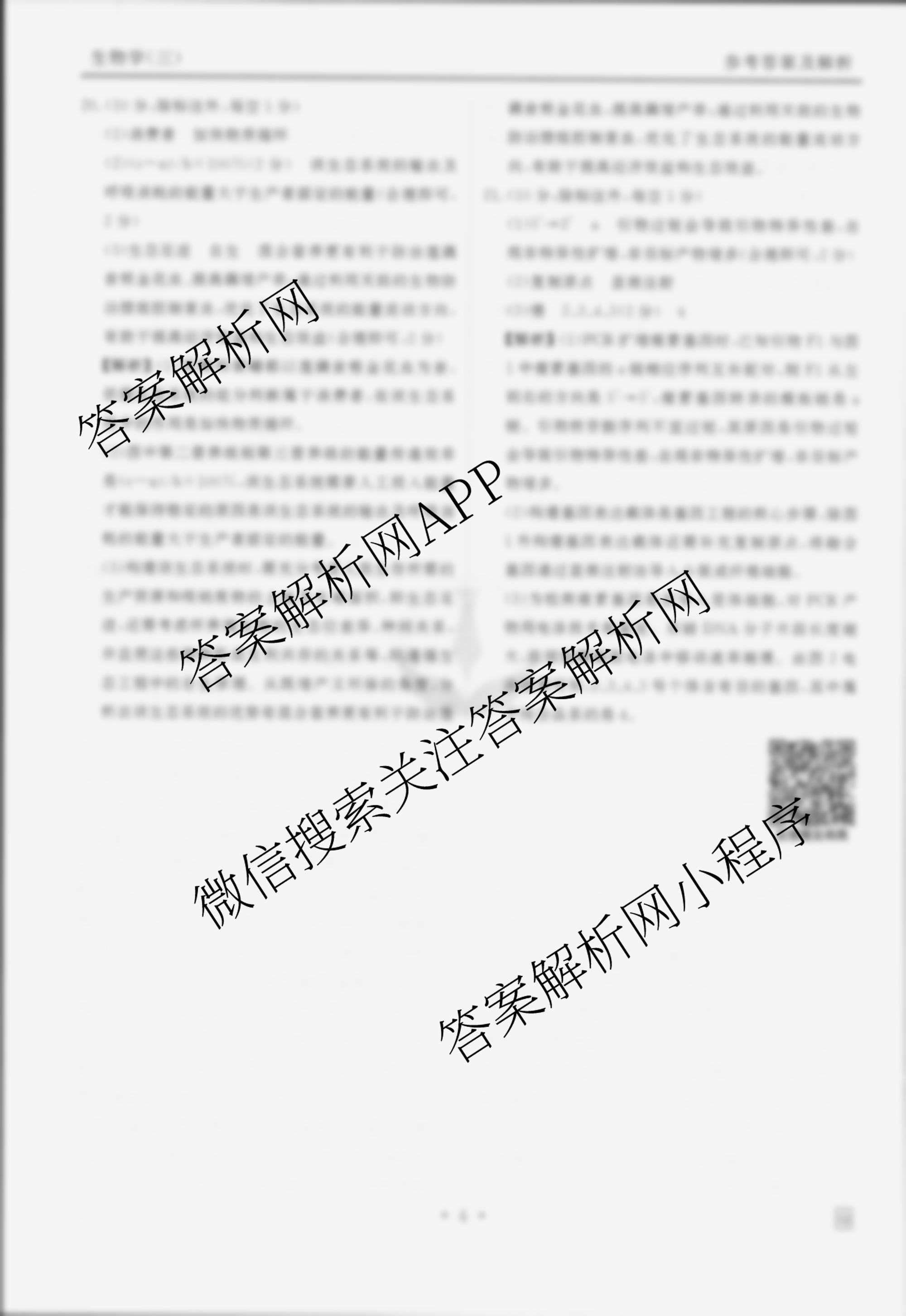 - [衡水金卷先享题]调研卷 2025年普通高中学业水平选择性考试模拟试题 生物(S)(三)3答案