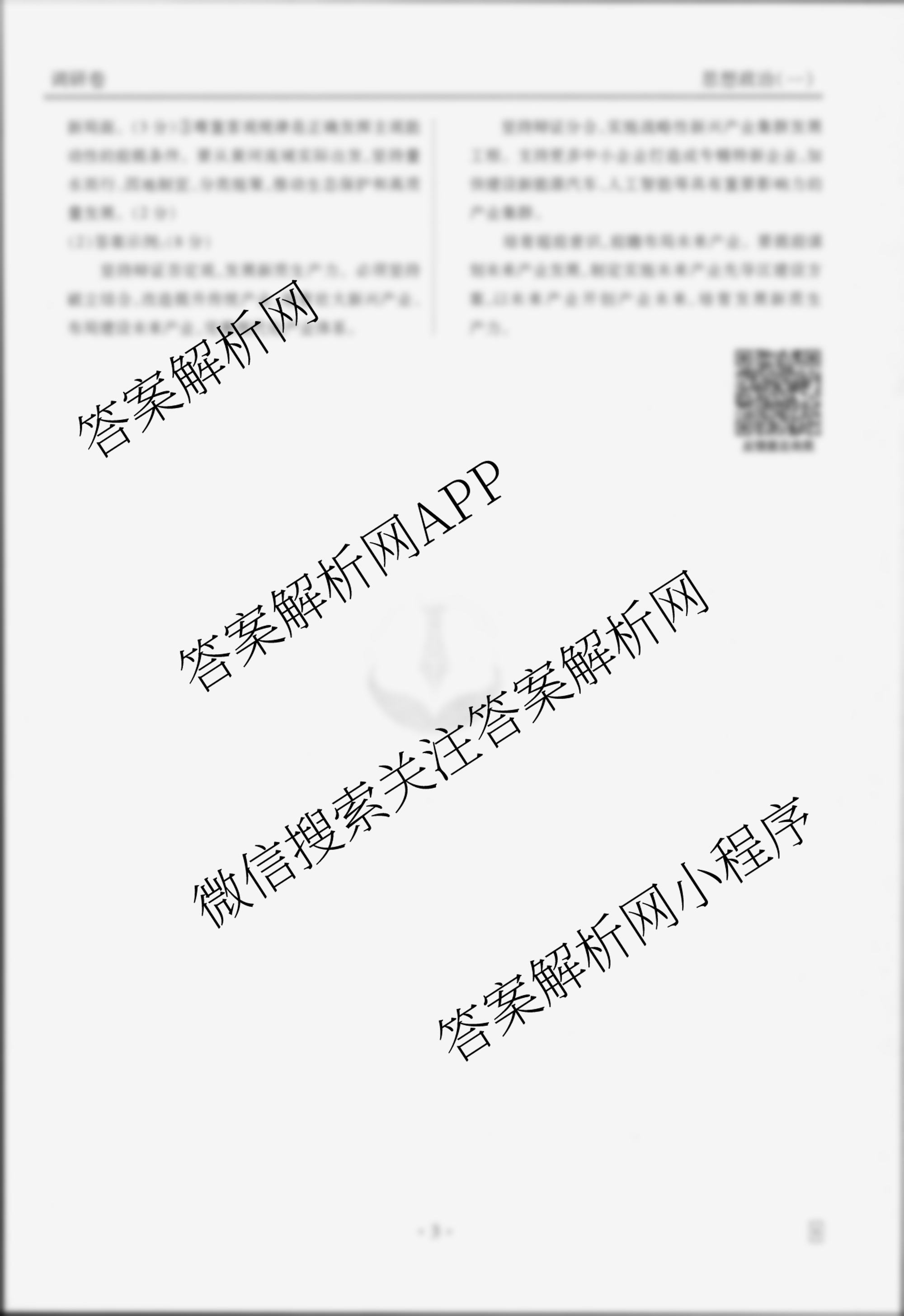 - (衡水金卷先享题)·调研卷 2025年普通高中学业水平选择性考试模拟 政治(MH)(一)1答案