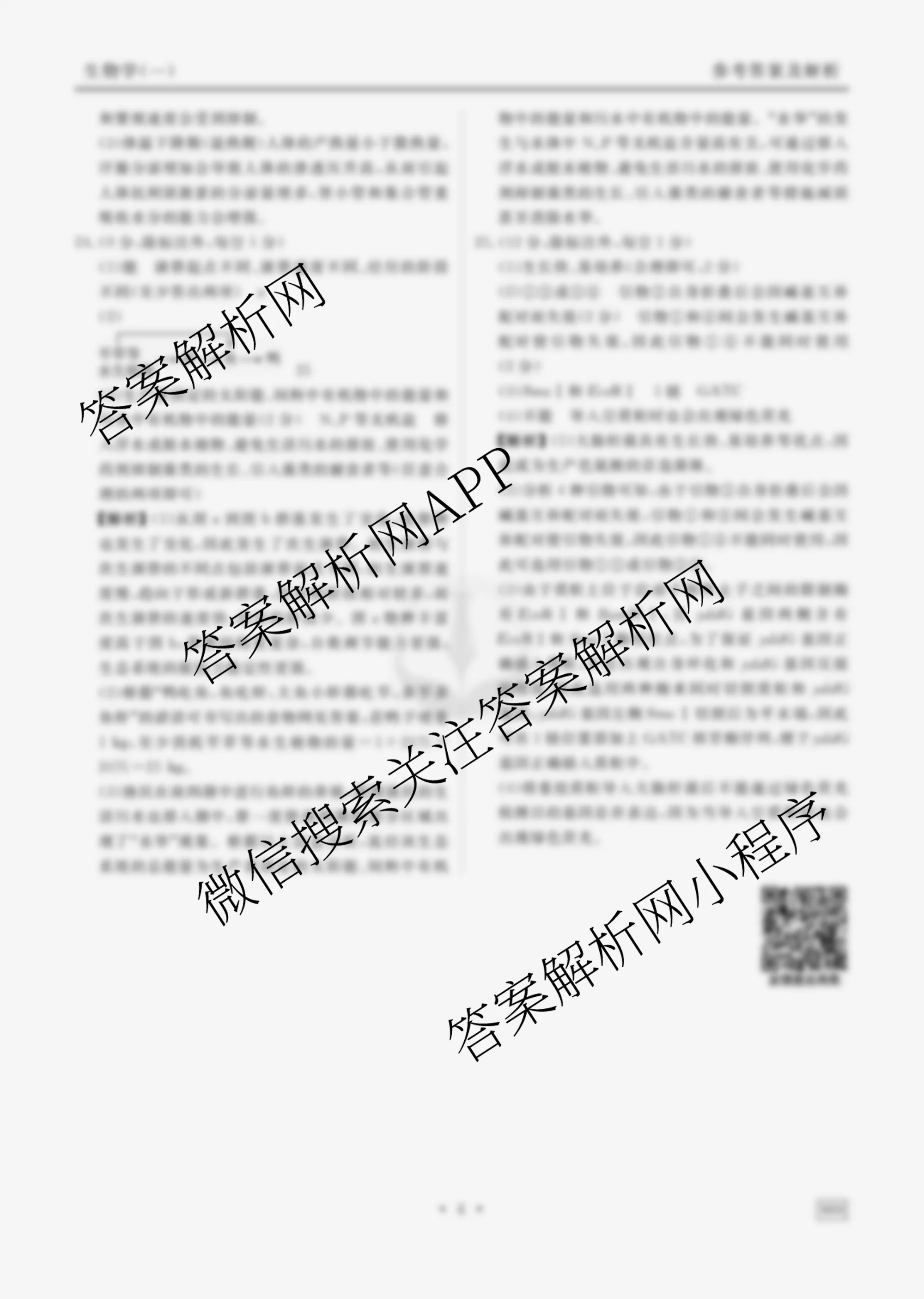 - (高三)[衡水金卷先享题]·调研卷 2025年普通高中学业水平选择性考试模拟试题 生物(W)(一)1答案