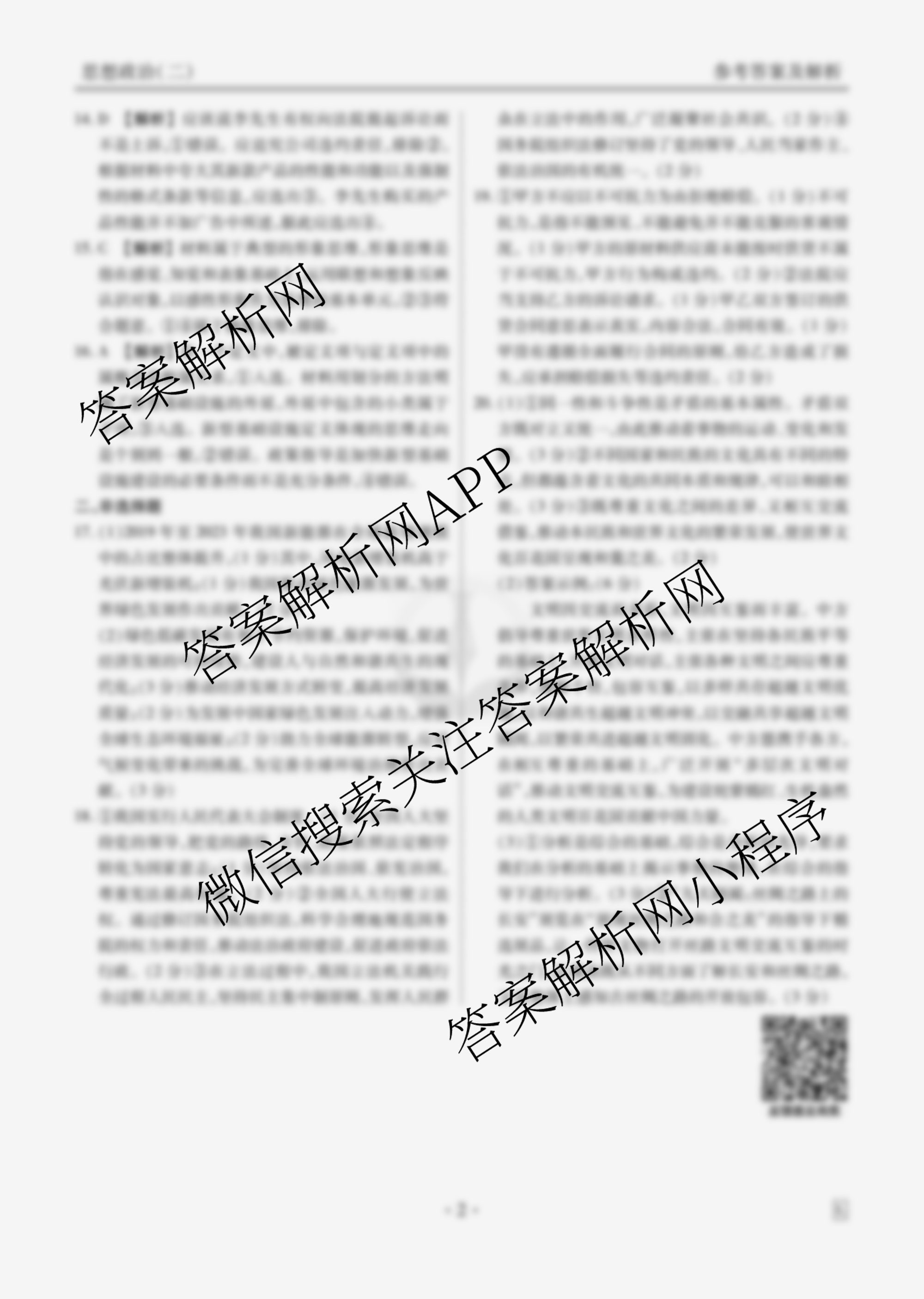 - [衡水金卷先享题]·调研卷 2025年普通高中学业水平选择性考试模拟试题(二)2政治(GX)答案