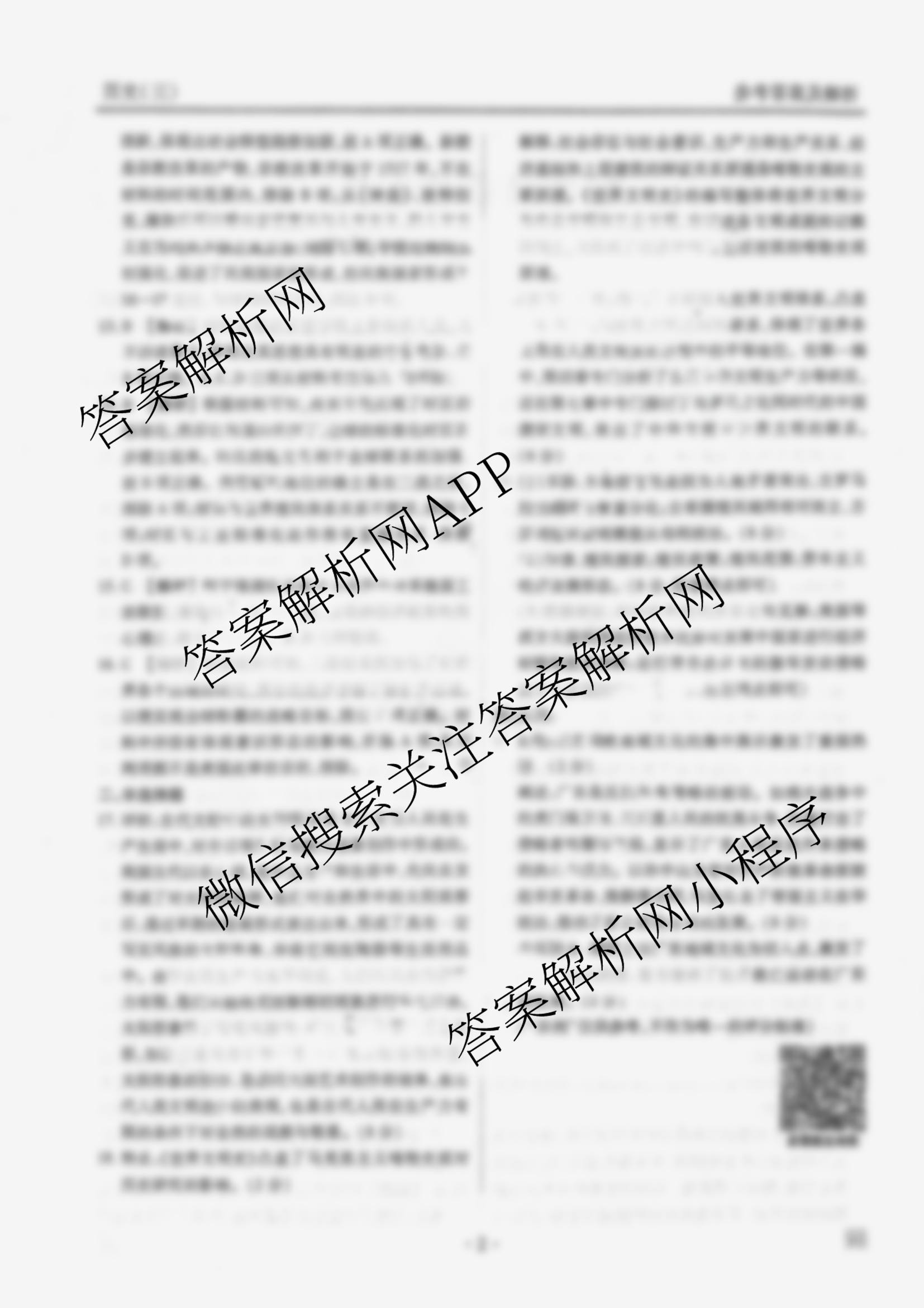 - [高三]衡水金卷先享题调研卷 2025年普通高等学校招生全国统一考试模拟(三)3历史(CY)答案