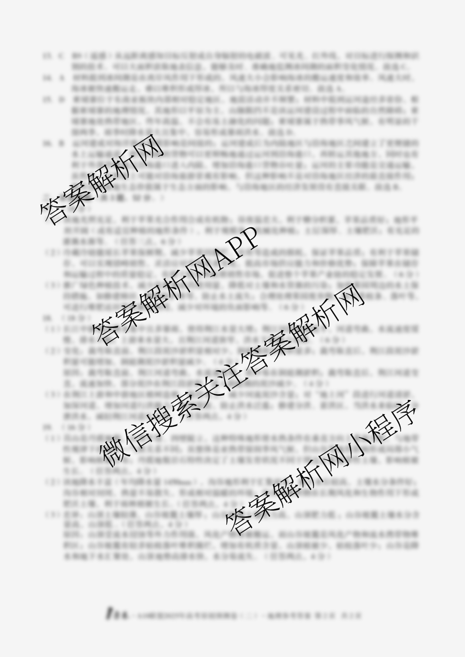 - (高三)[1号卷]A10联盟2025年高考原创预测卷(二)2地理答案