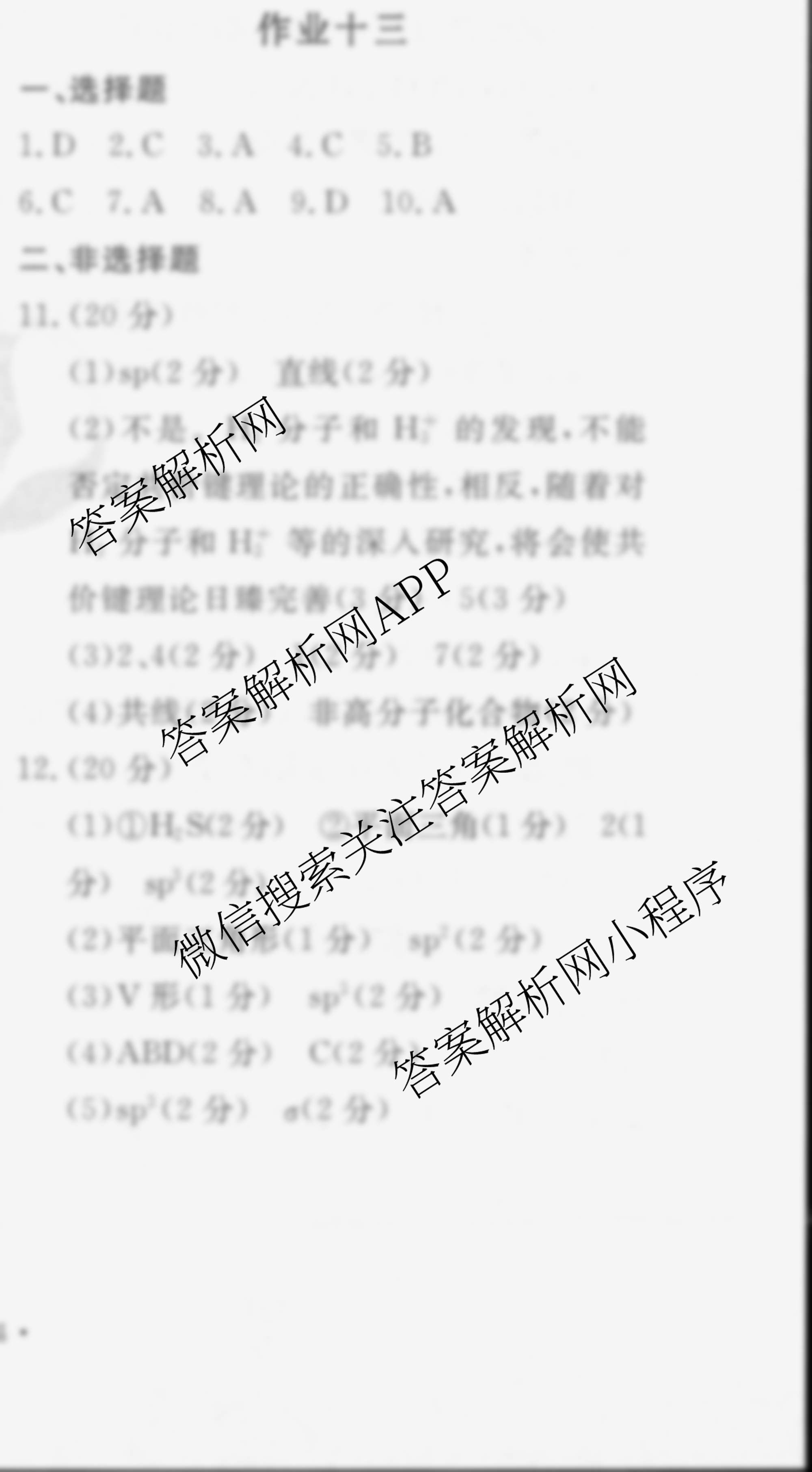衡水金卷先享题2024-2025学年度高二寒假作业 化学 作业十三答案