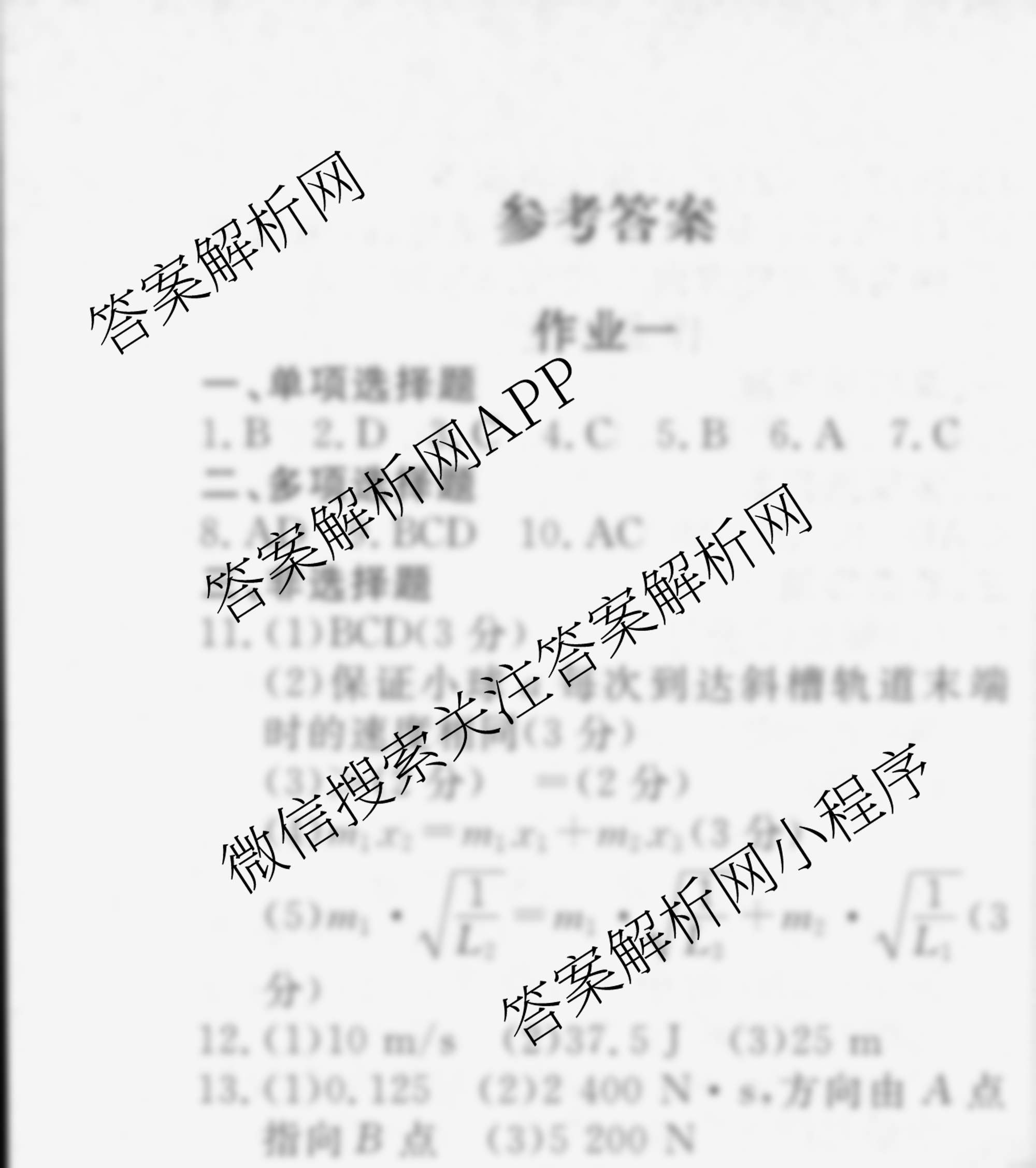 衡水金卷先享题2024-2025学年度高二寒假作业 物理 作业一答案