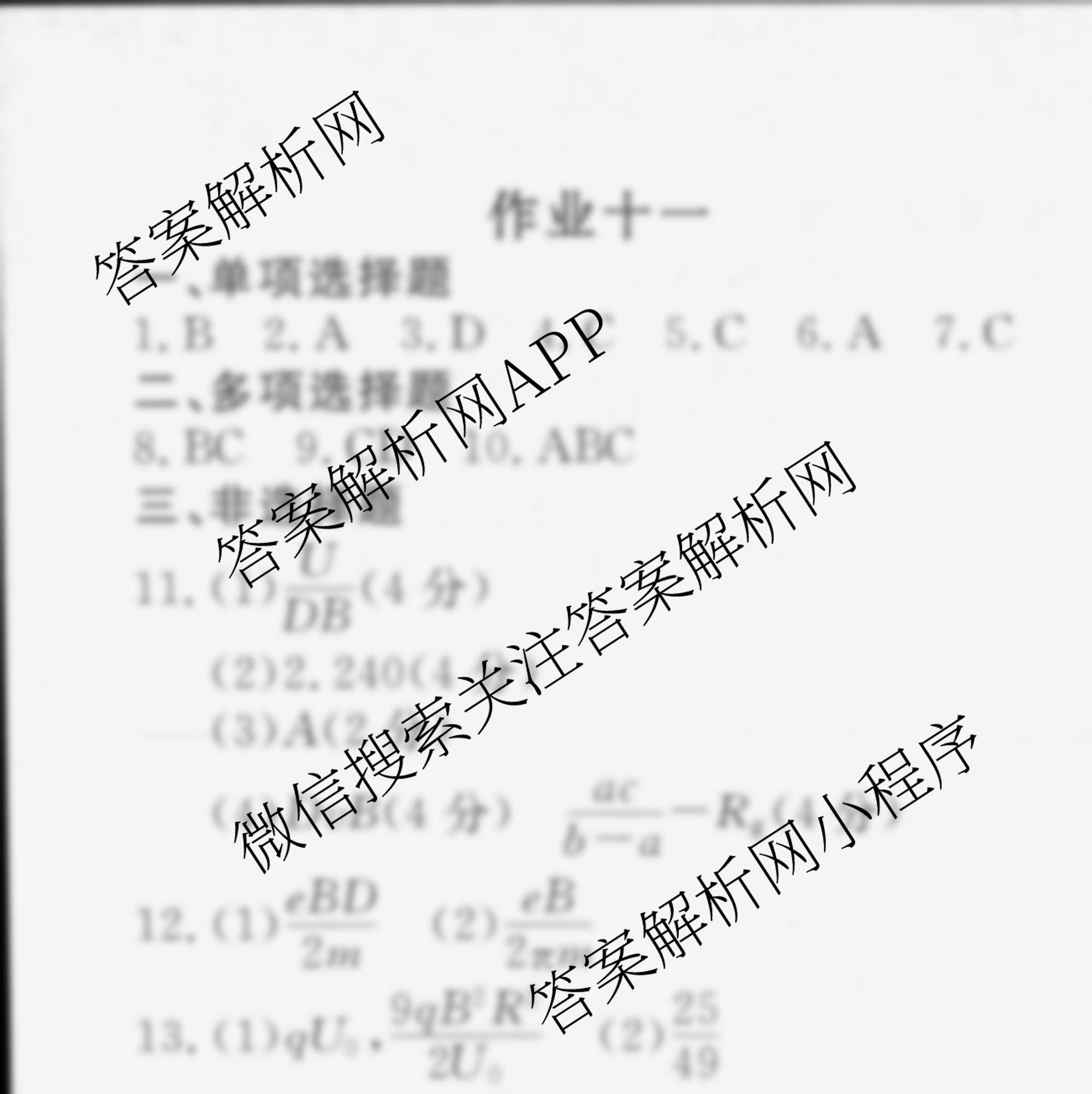 衡水金卷先享题2024-2025学年度高二寒假作业 物理 作业十一答案