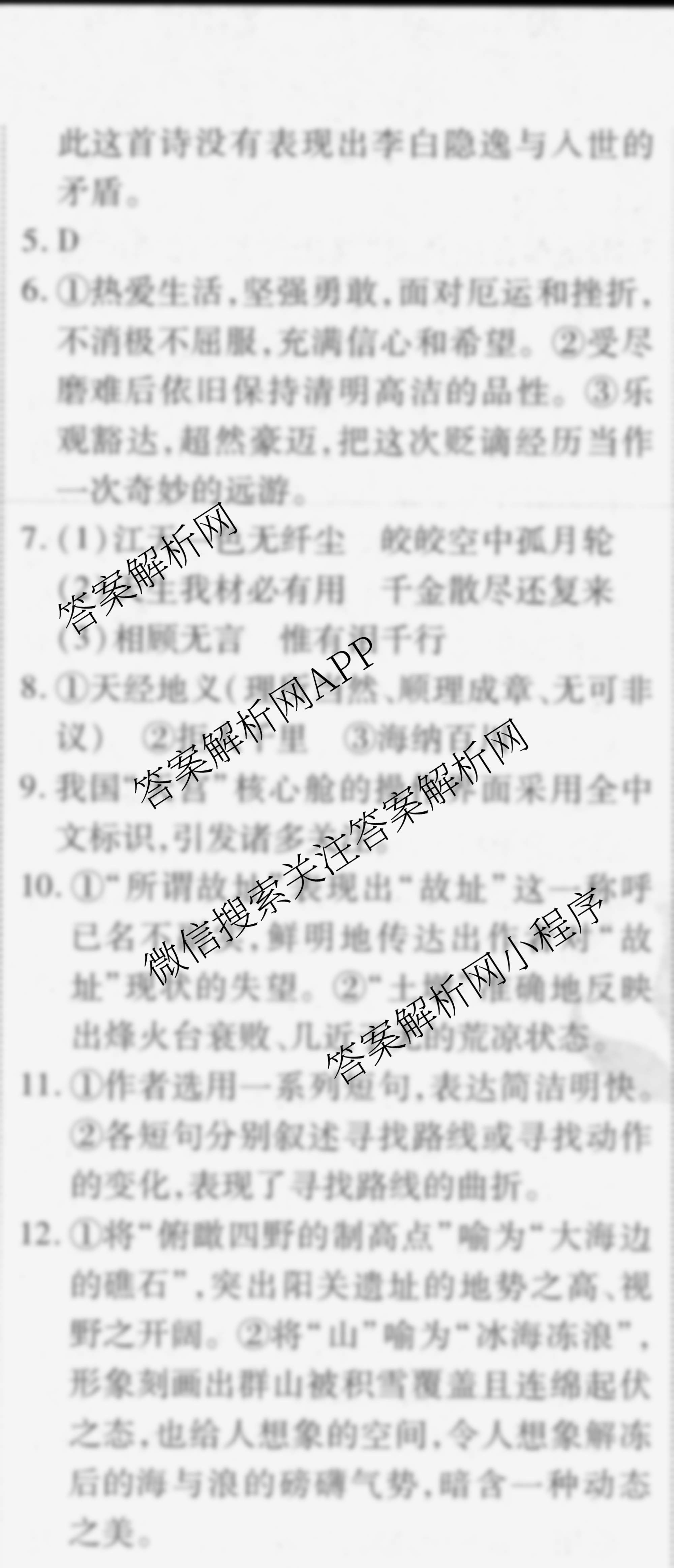 衡水金卷先享题2024-2025学年度高二寒假作业 语文 作业七答案