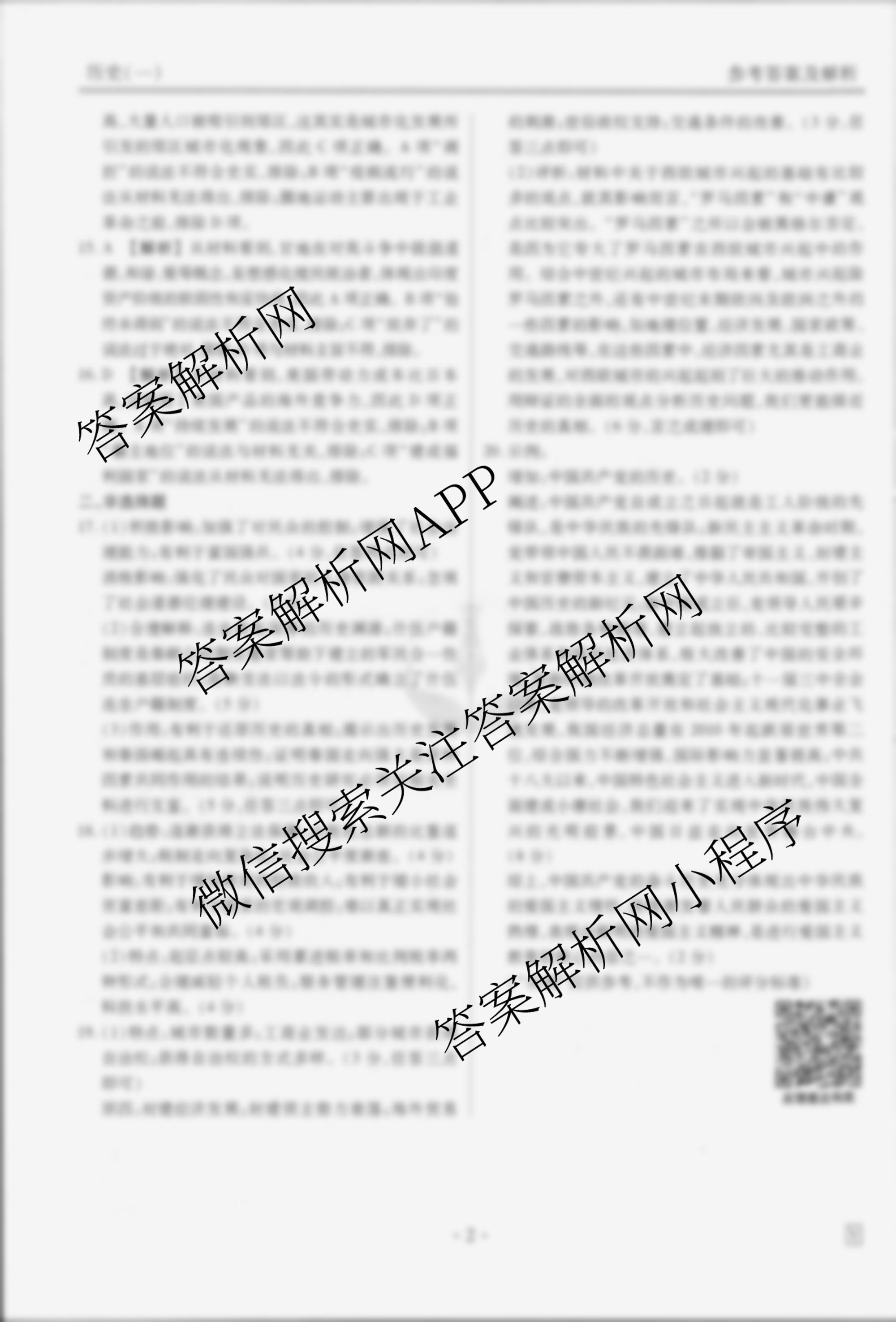 - (衡水金卷先享题)信息卷 2025年普通高中学业水平选择性考试模拟试题(一)1历史(AH)答案