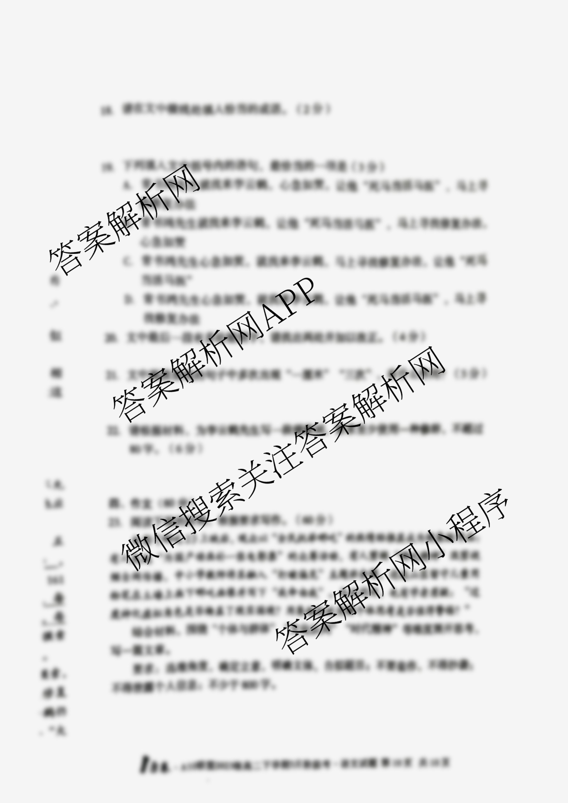 - [1号卷]A10联盟2023级高二下学期3月阶段考考试语文答案