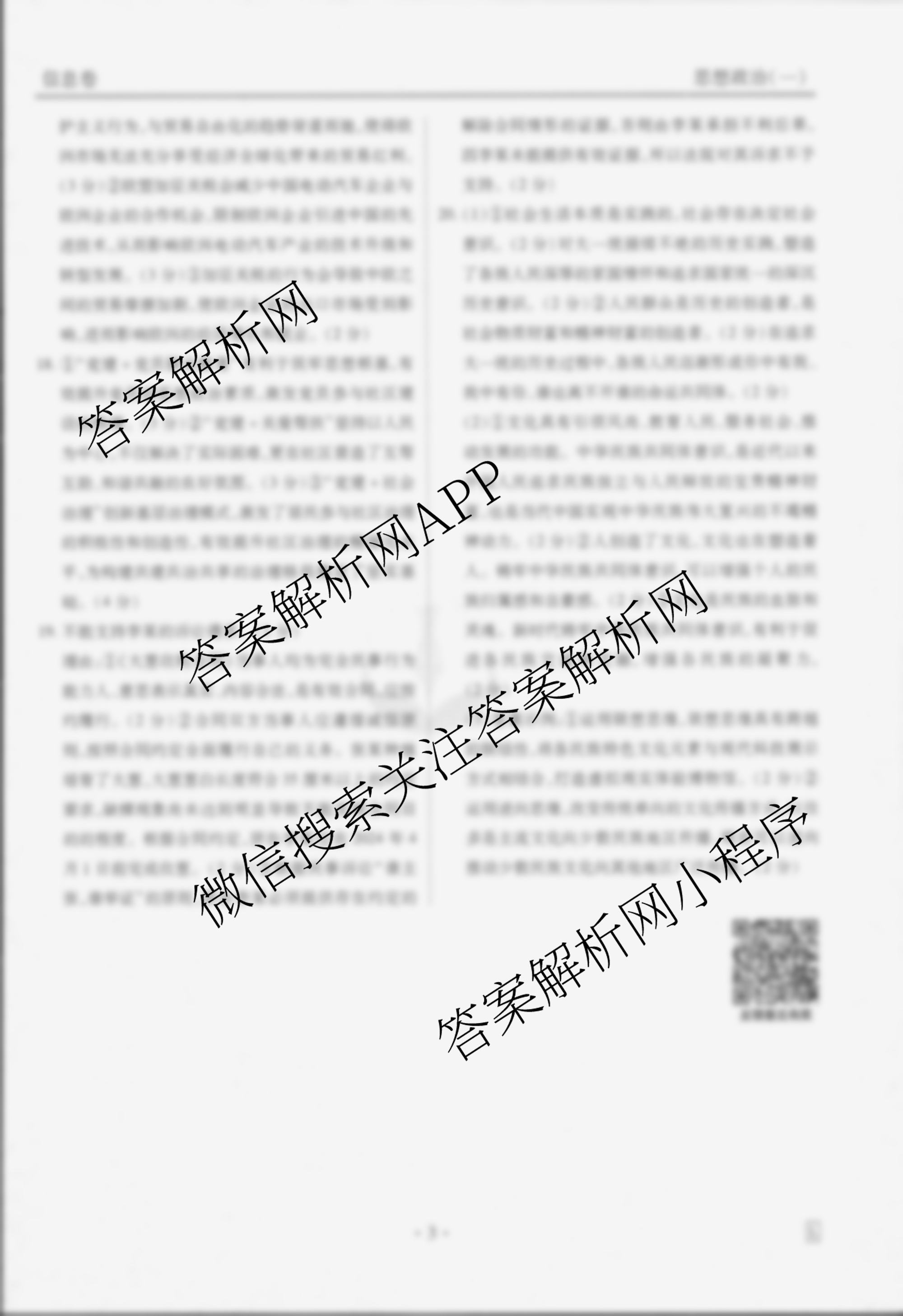 - [高三]衡水金卷先享题信息卷 2025年普通高中学业水平选择性考试模拟试题(一)1政治(FJ)答案