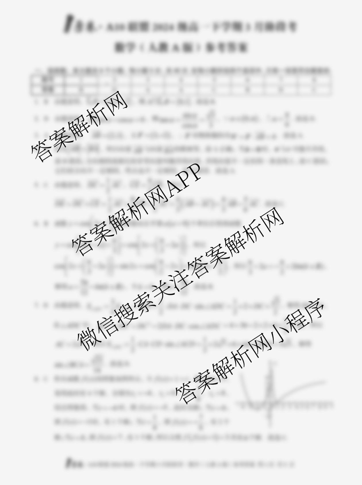- (高一)[1号卷]·A10联盟2024级下学期3月阶段考考试数学(北师大版)答案