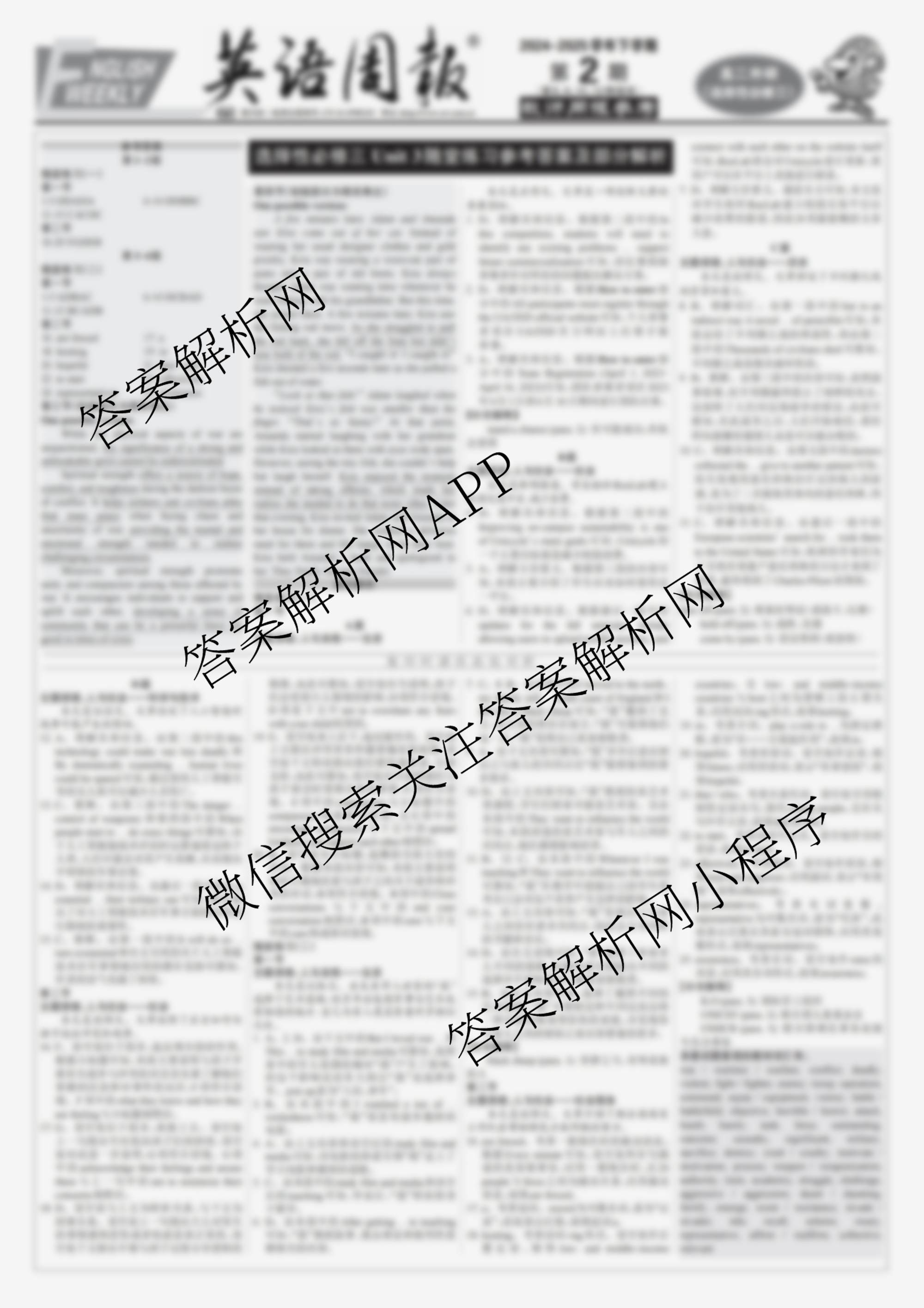 2024-2025 英语周报 高二 外研(XB)(选择性必修三)下第8期答案,目前小牛顿答案网已经汇总了2024-2025 英语周报 高二 外研(XB)(选择性必修三)下第8期答案的各科答案和试卷,获取更多英语周报答案解析,请在关注本站。