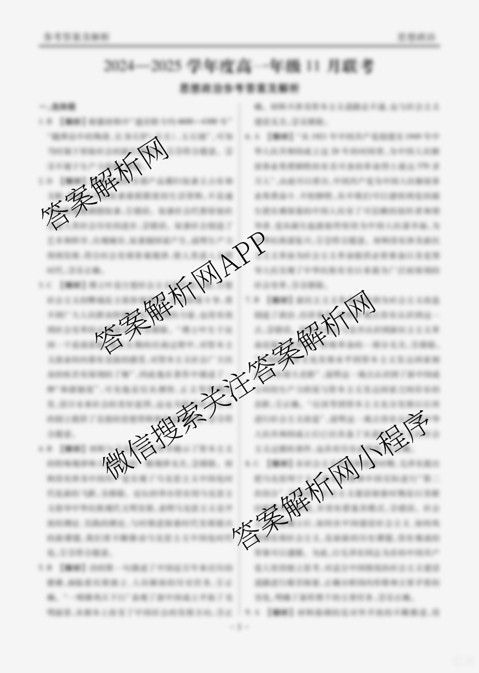 - 2024-2025[高一]衡水大联考广东省学年度年级11月联考政治答案