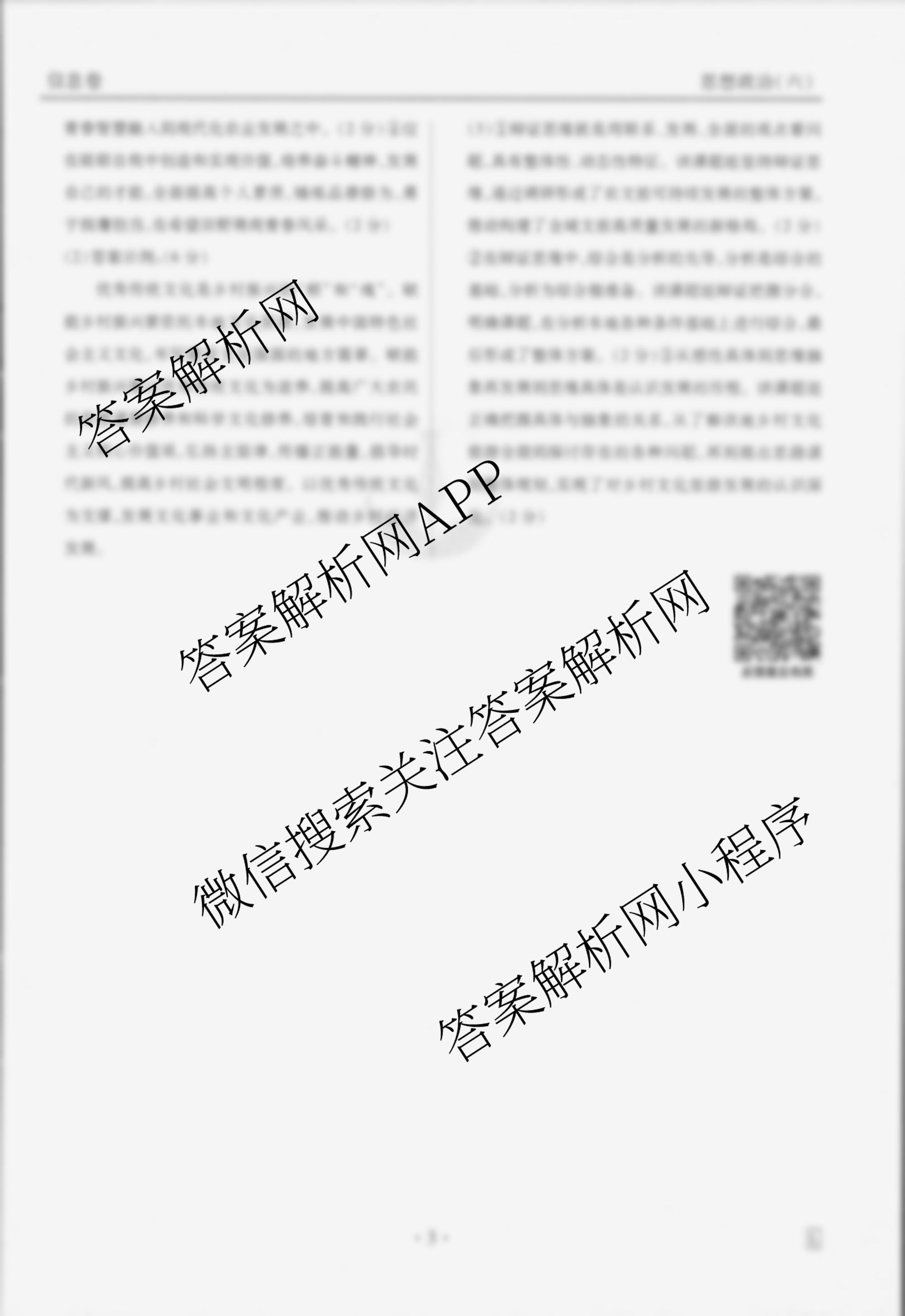 衡水金卷先享题信息卷 2025年普通高中学业水平选择性考试模拟试题(六)6政治(L)答案
