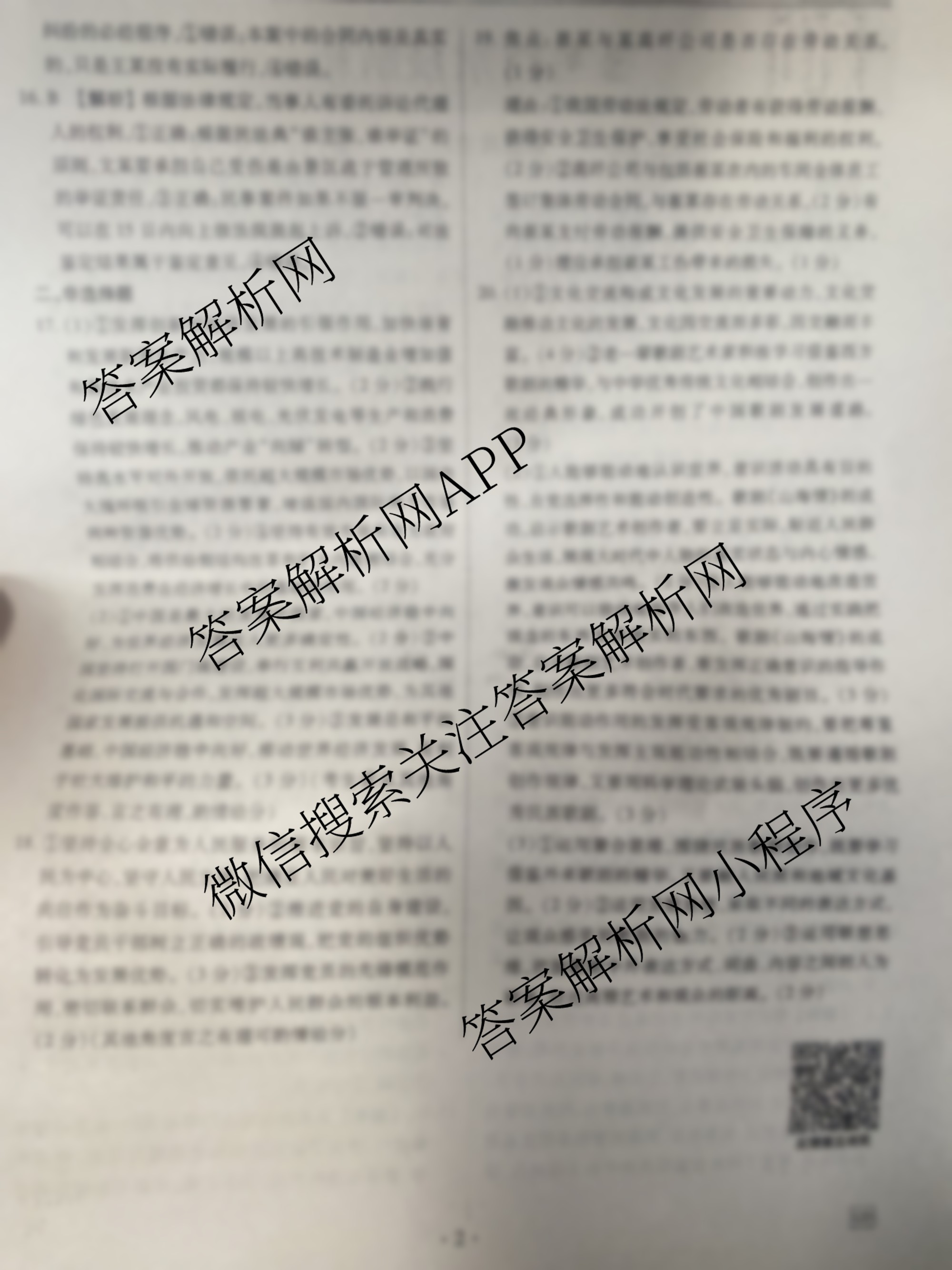 - [高三][衡水金卷先享题]信息卷 2025年普通高中学业水平选择性考试模拟试题(二)2政治(Q)答案