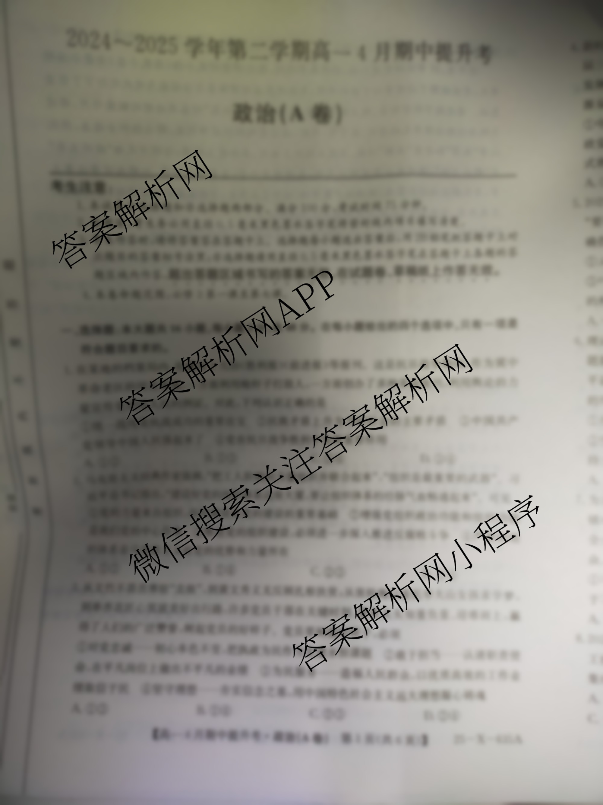 三晋卓越联盟·山西省2024~2025学年高一4月期中提升考试(25-X-635A)政治(A卷)试题,目前小牛顿答案网已经汇总了三晋卓越联盟·山西省2024~2025学年高一4月期中提升考试(25-X-635A)政治(A卷)试题的各科答案和试卷,获取更多三晋卓越联盟答案解析,请在关注本站。