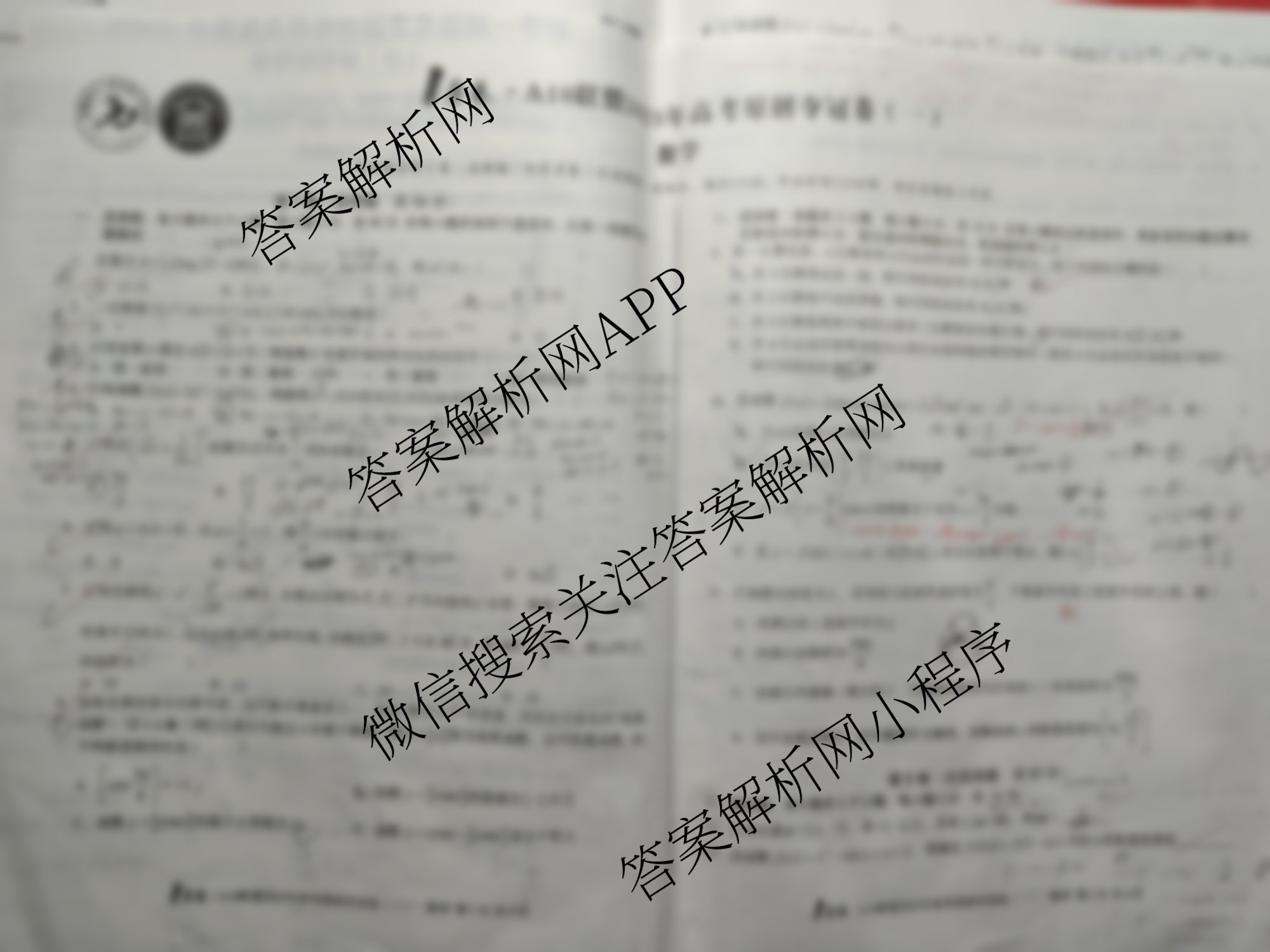 - 高三[1号卷]A10联盟2025年高考原创夺冠卷(一)数学答案