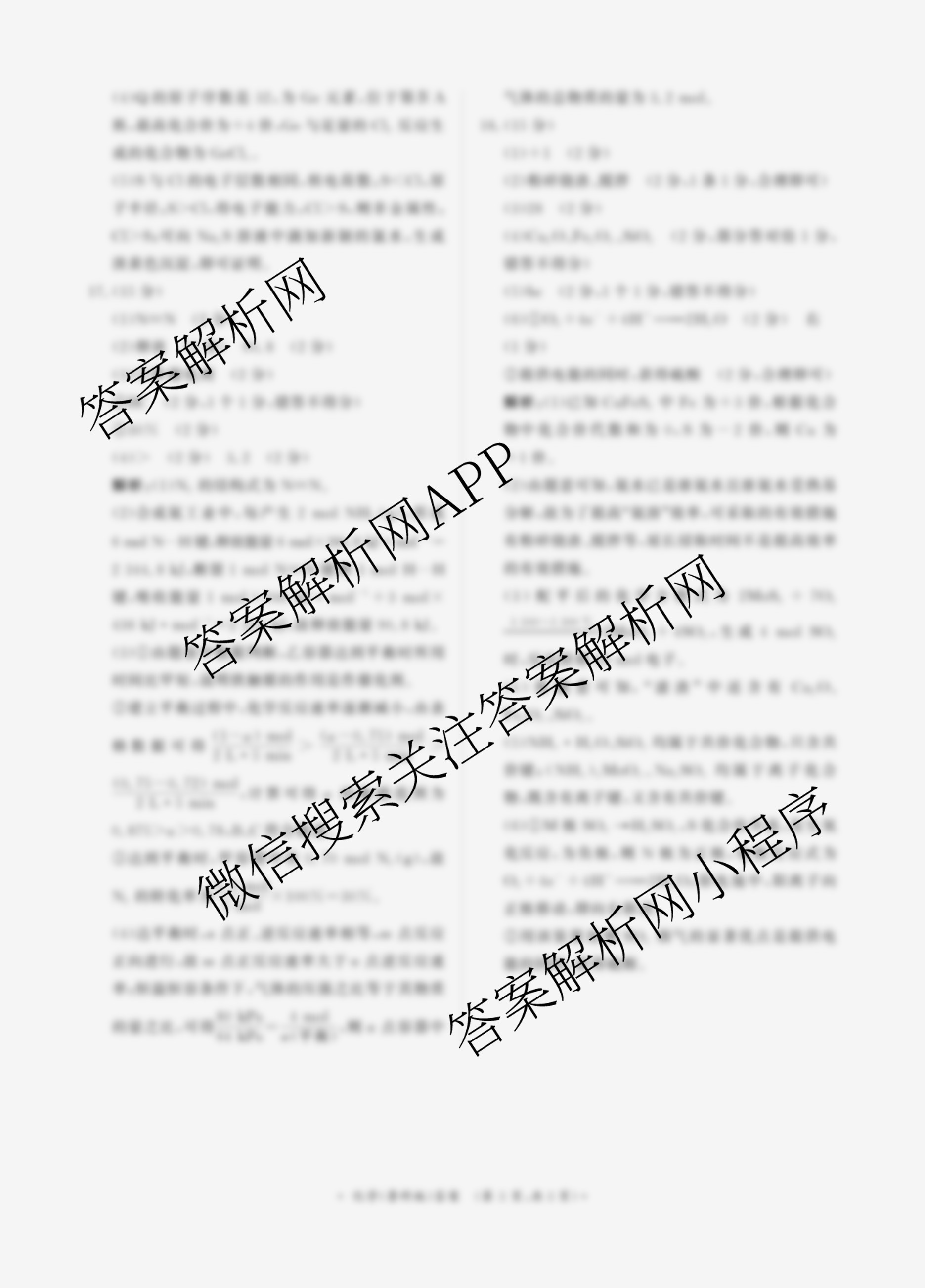 - 2024-2025高一青桐鸣河南省普通高中学年(下)年级期中考试化学(人教版)答案