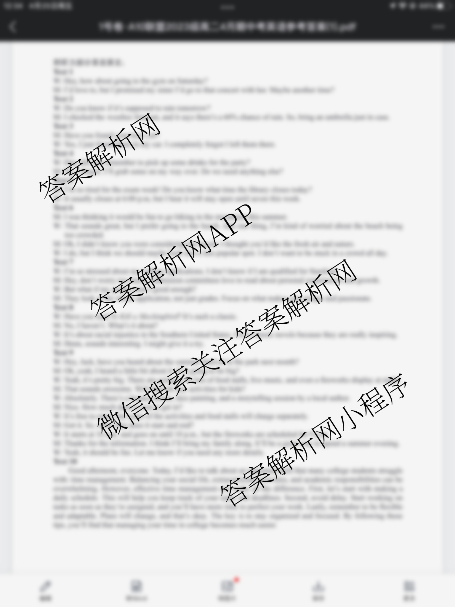 - [1号卷]·A10联盟2023级(高二)下学期4月期中考试英语试题