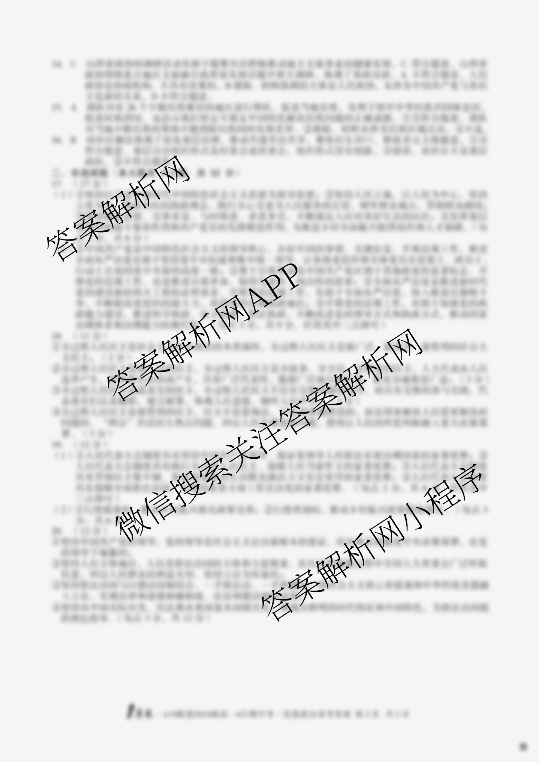 - [高一](1号卷)·A10联盟2024级4月期中考试政治(B)答案